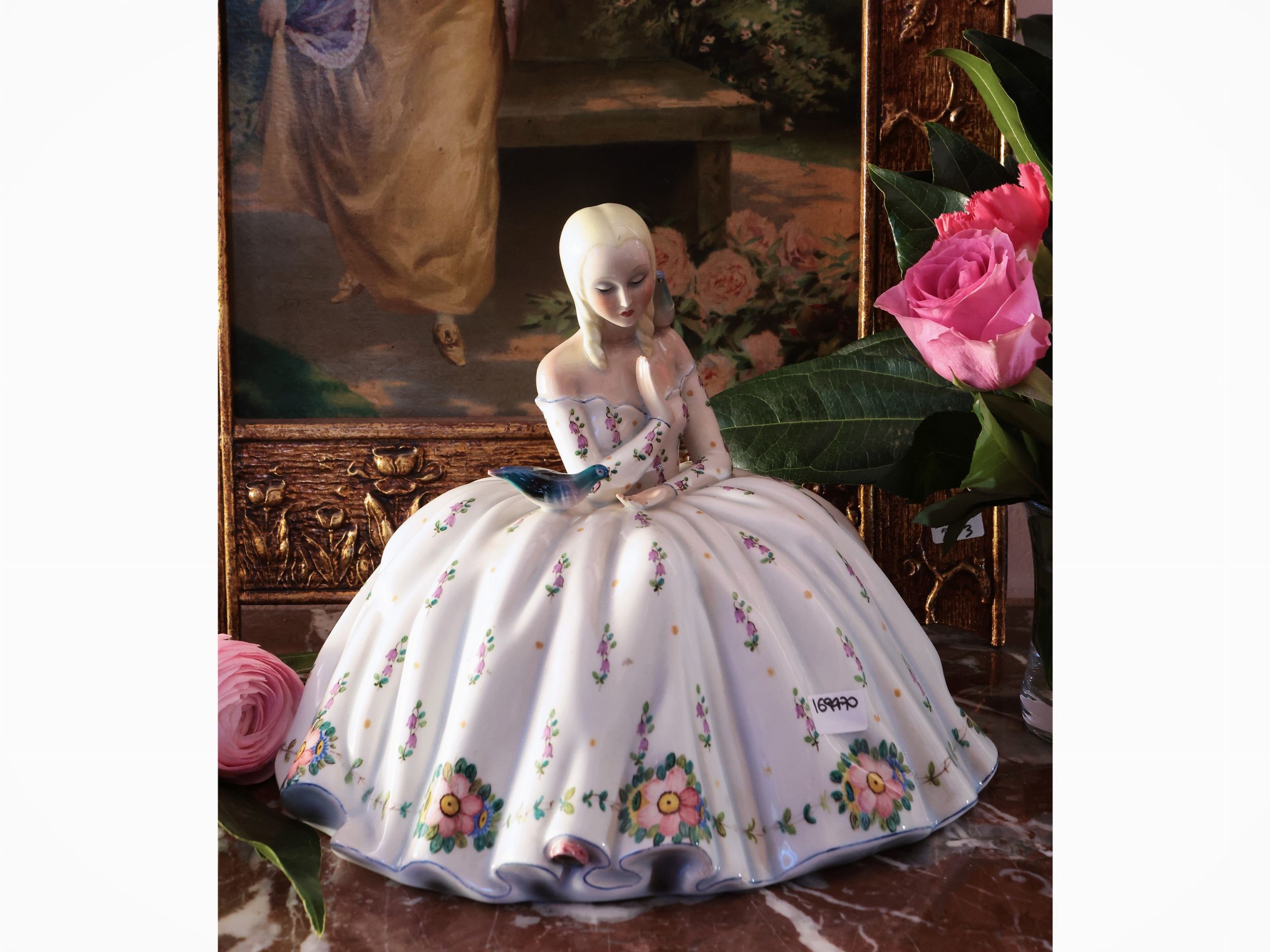Torino, Anni Quaranta raffigurante fanciulla con uccellino