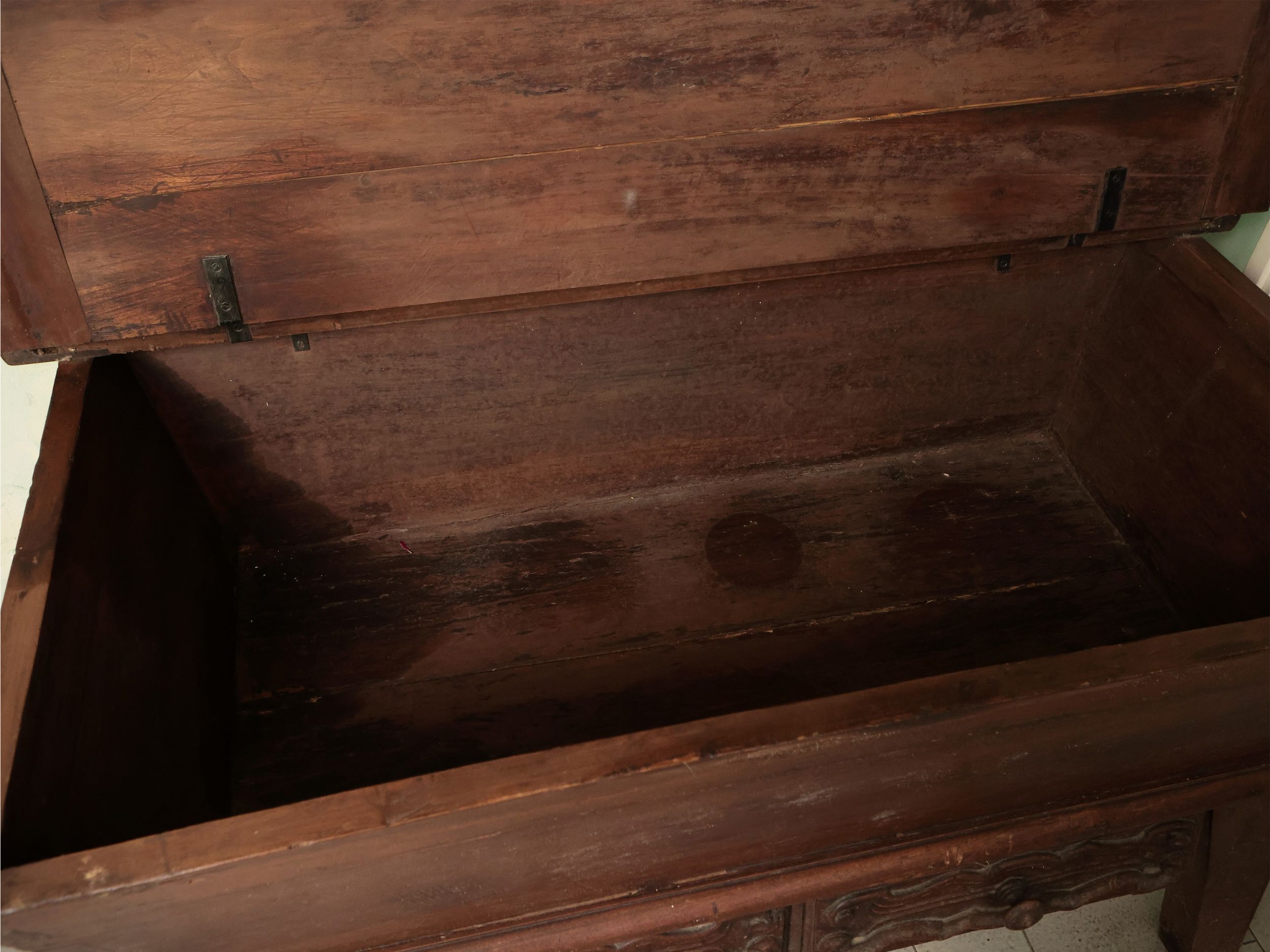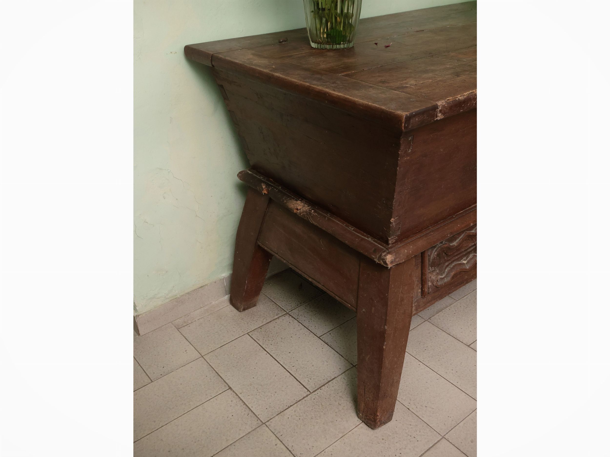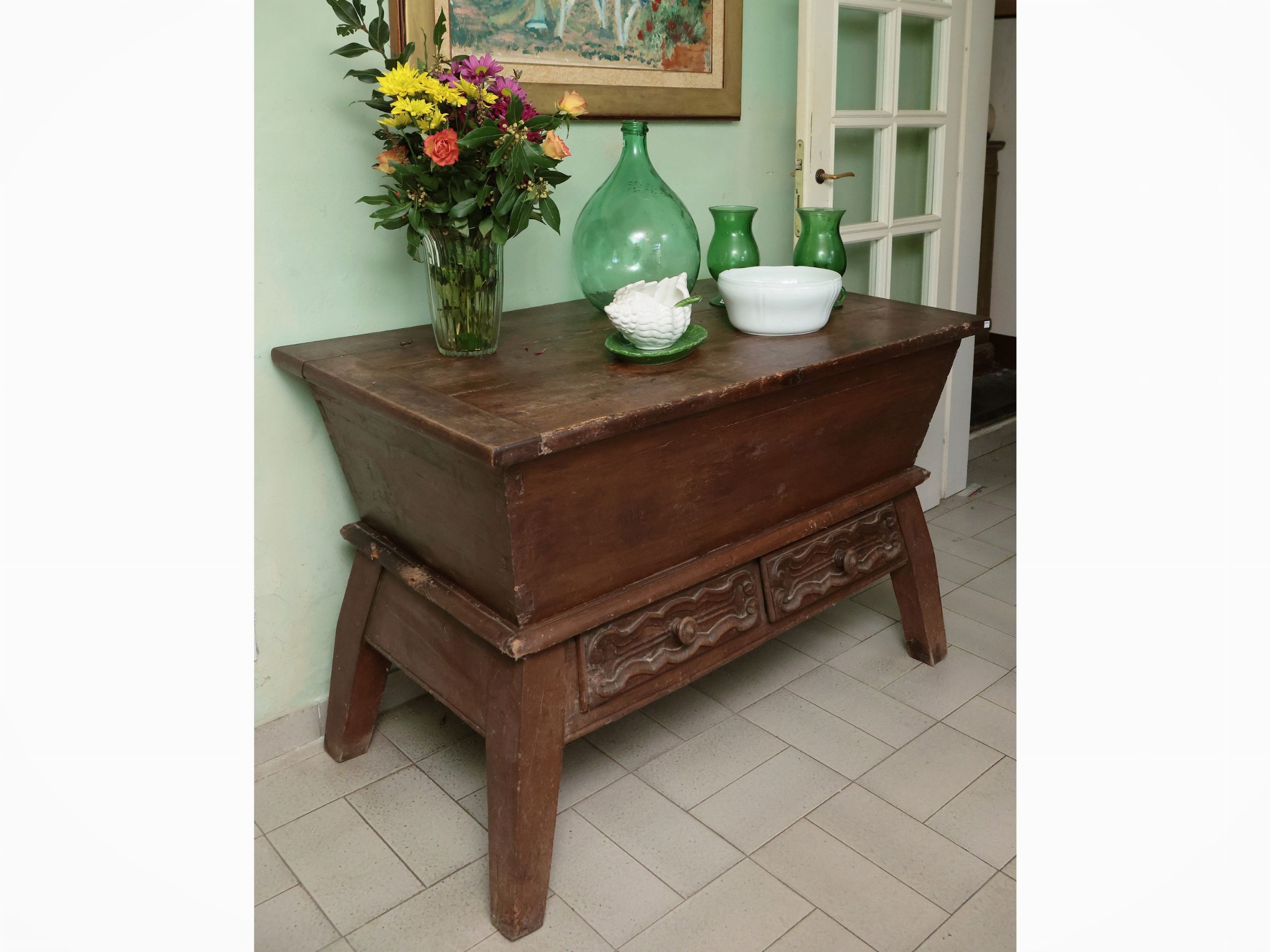 XIX secolo piano ad alzarsi a celare vano contenitore, due cassetti sottostanti alcuni difetti