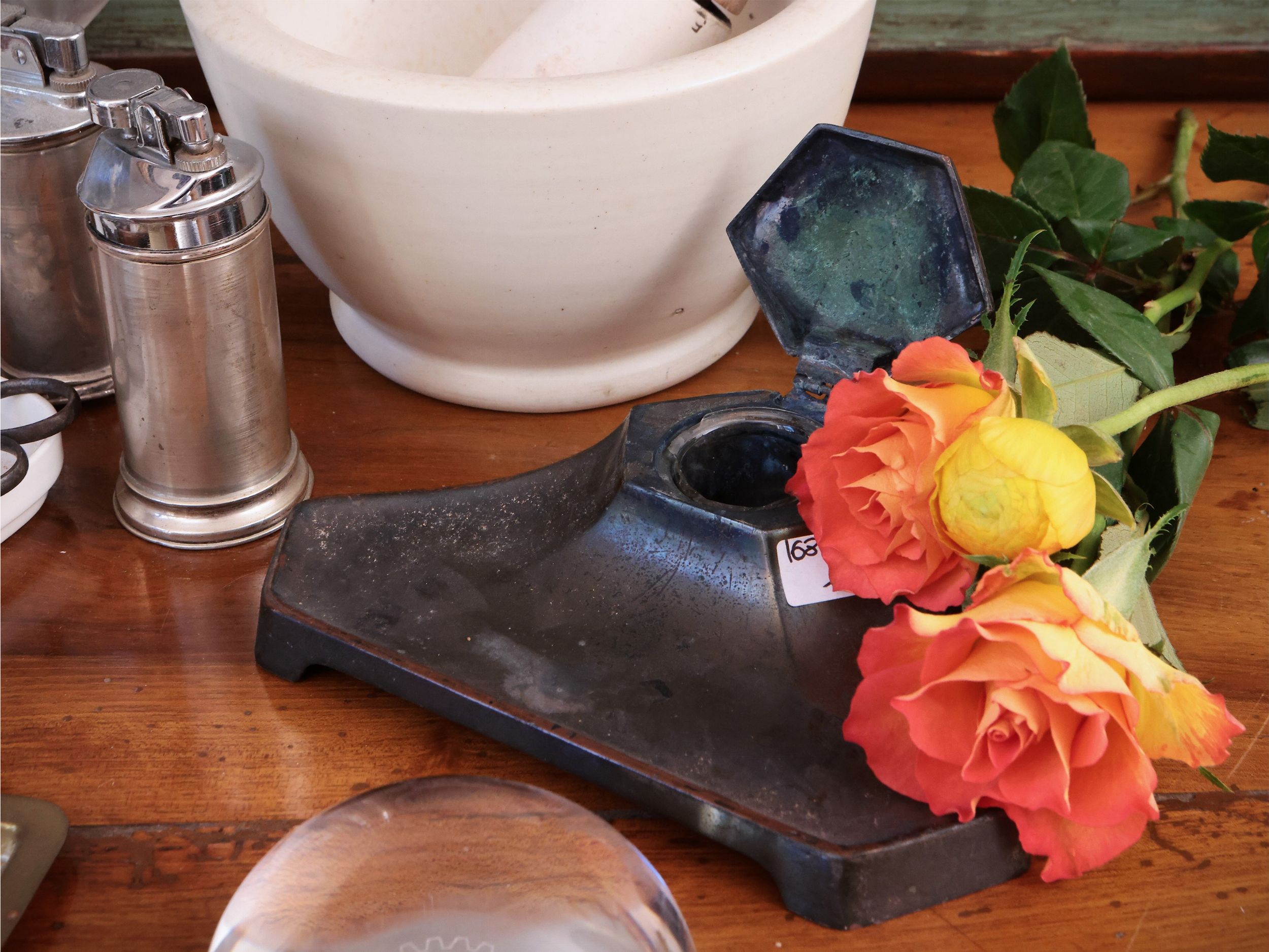 XIX/XX secolo tra cui un mortaio in marmo bianco corredato da pestello in parte in legno, alcune scatoline di varia foggia e dimensione ed altre curiosità