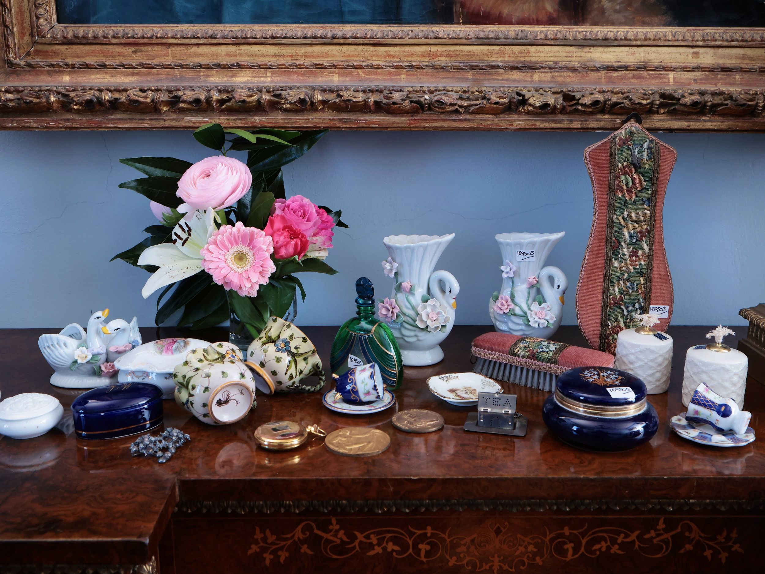 XIX/XX secolo tra cui alcune scatoline, una in porcellana Richard Ginori, una coppia di tazzine da caffè in terracotta Cantagalli (una con difetto), dipinte in policromia e con bordo mosso ed un orologio da tasca in metallo dorato