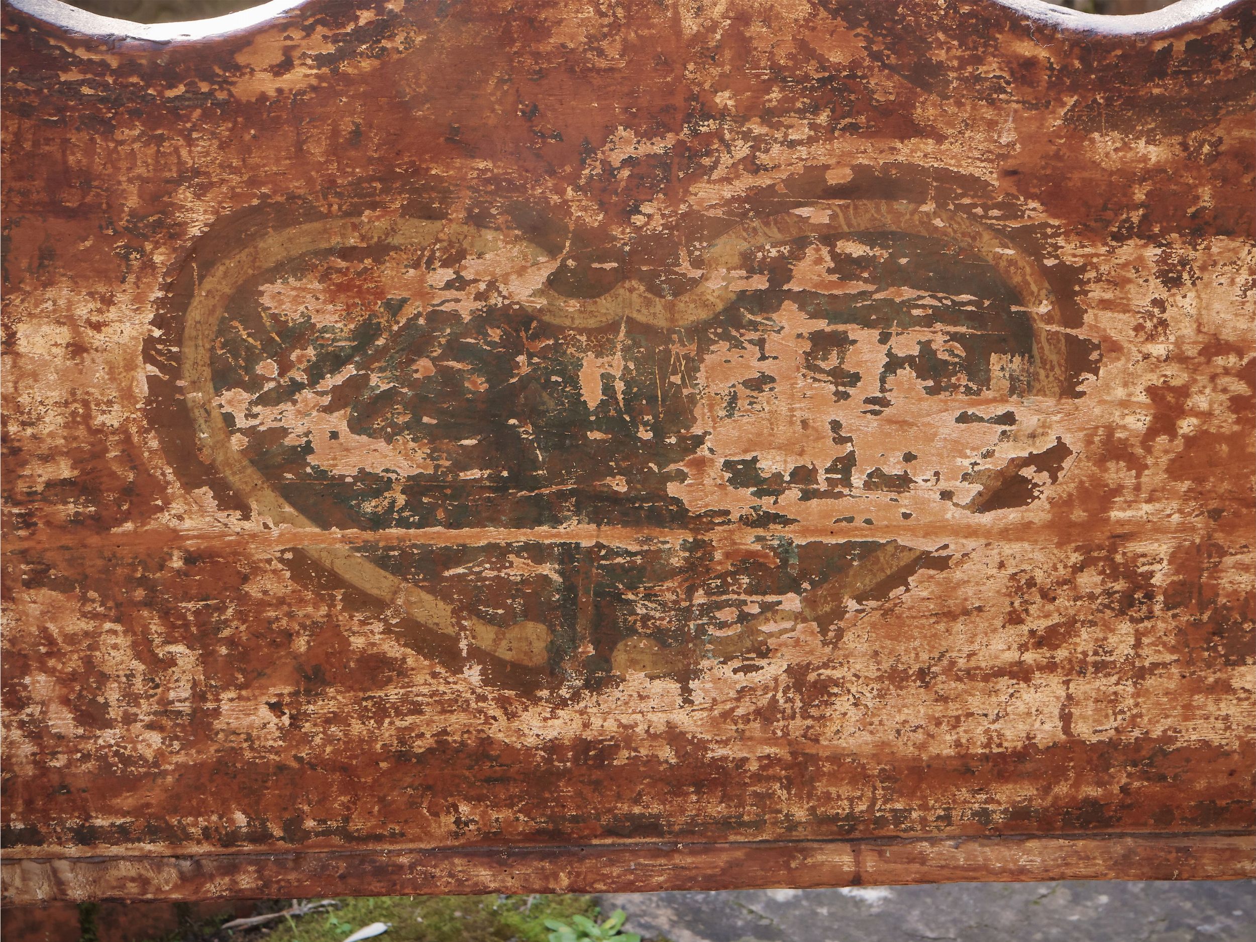 XVIII/XIX secolo schienale sagomato con motivo di volute contrapposte, alcuni difetti