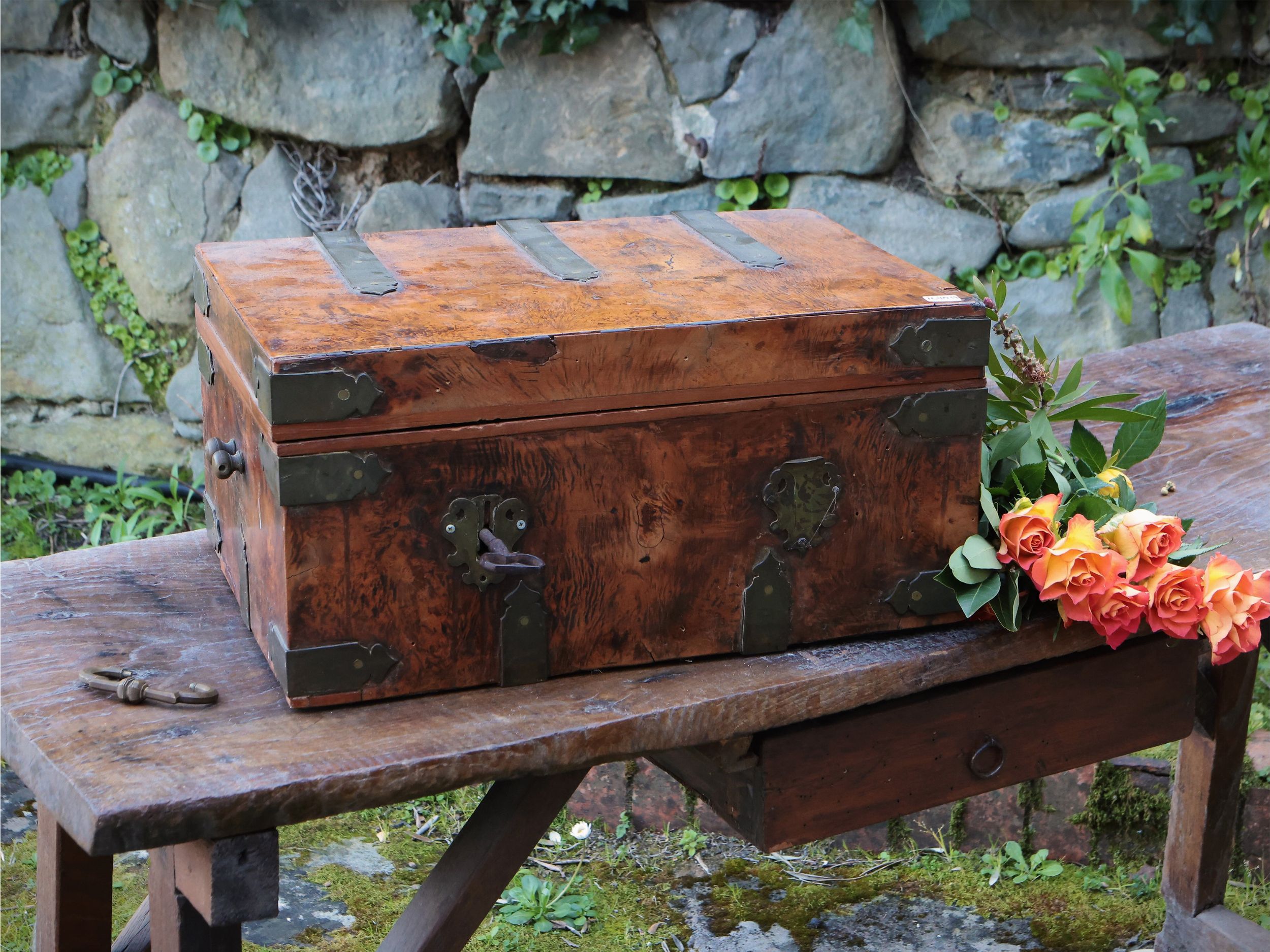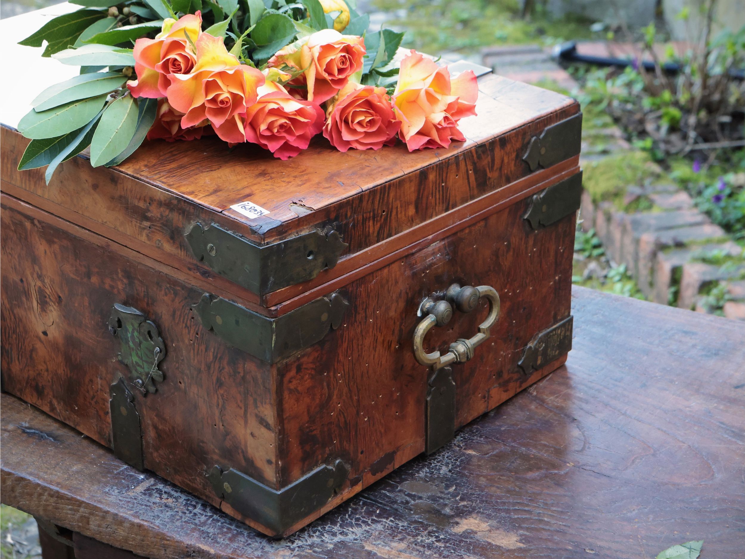 Piccolo forziere da viaggio impiallacciato in radica