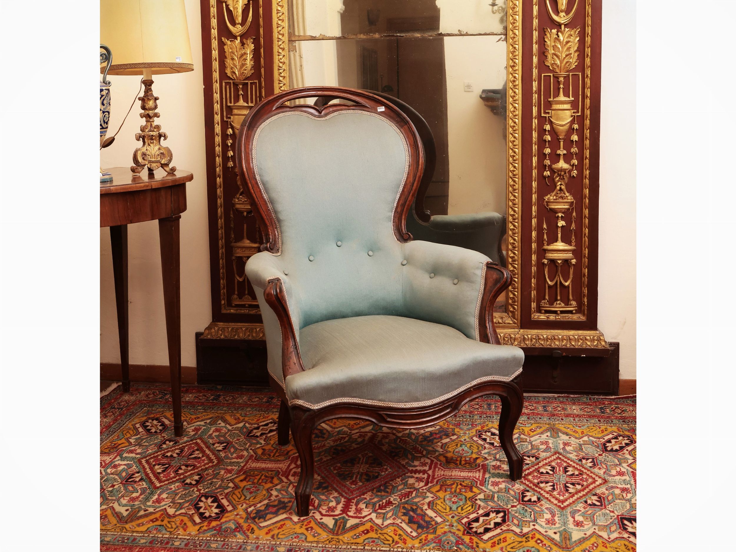 metà del XIX secolo rivestita in tessuto verde salvia