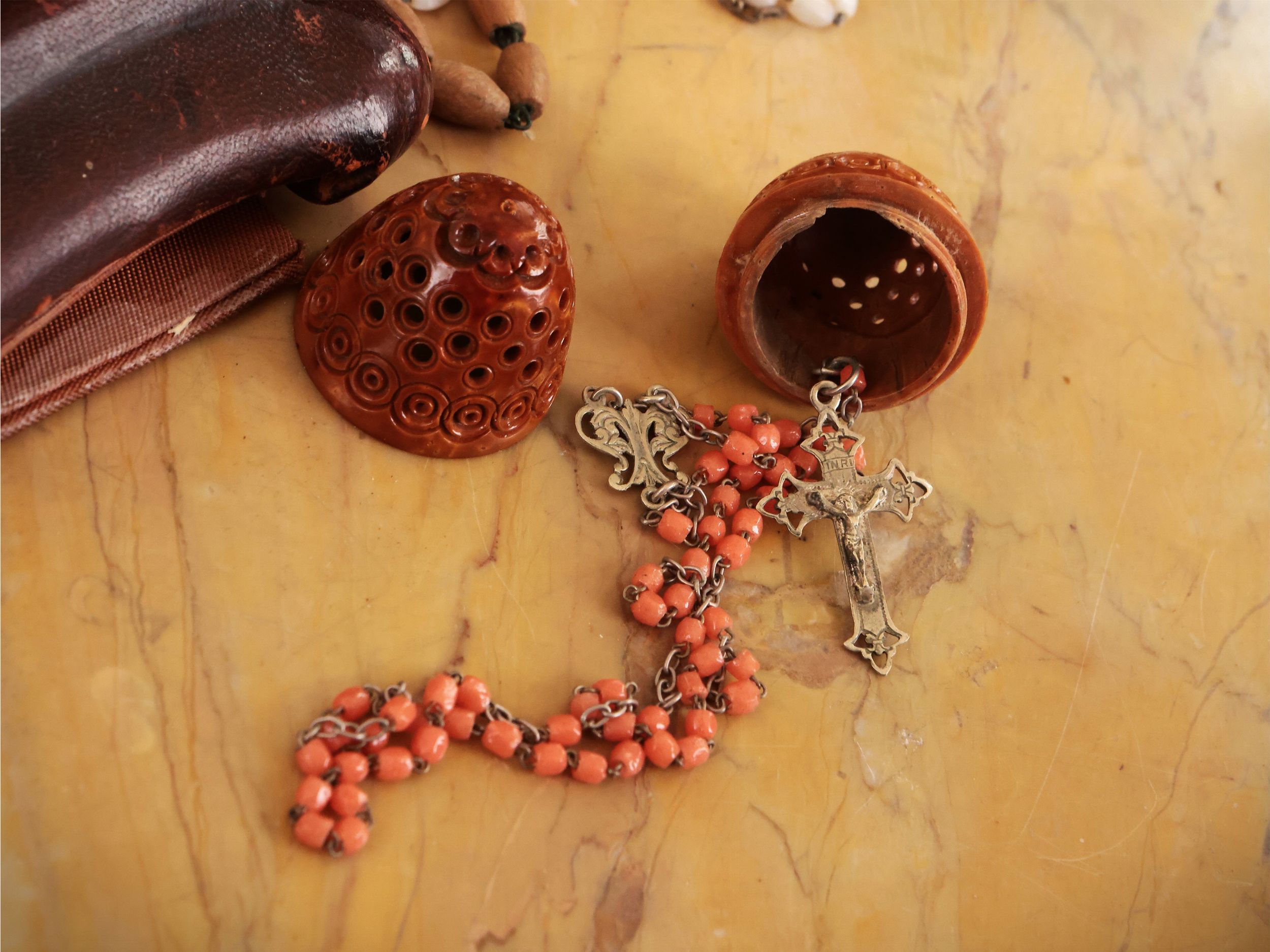 da Andrea del Sarto miniatura in ovale ad olio su cuoio, in cornice, abbinata ad altre curiosità d'epoca