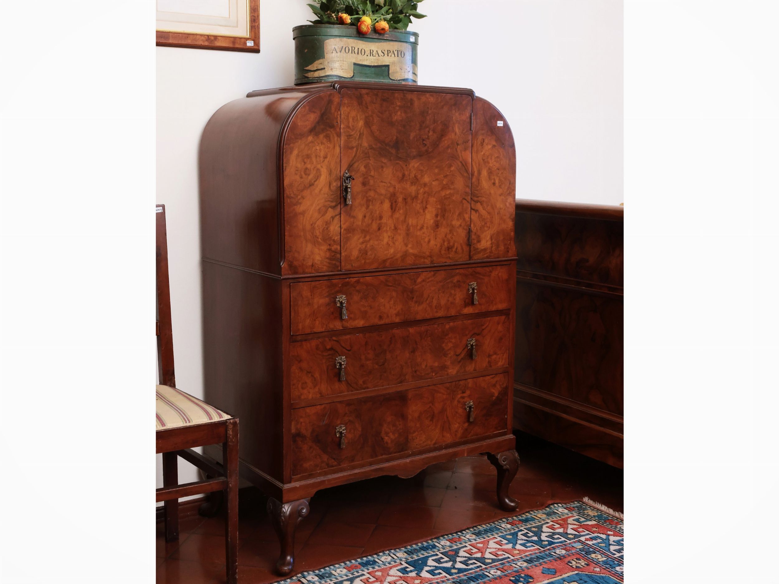 inizio del XX secolo di forma centinata, uno sportello e tre cassetti sul fronte, piedini a ricciolo