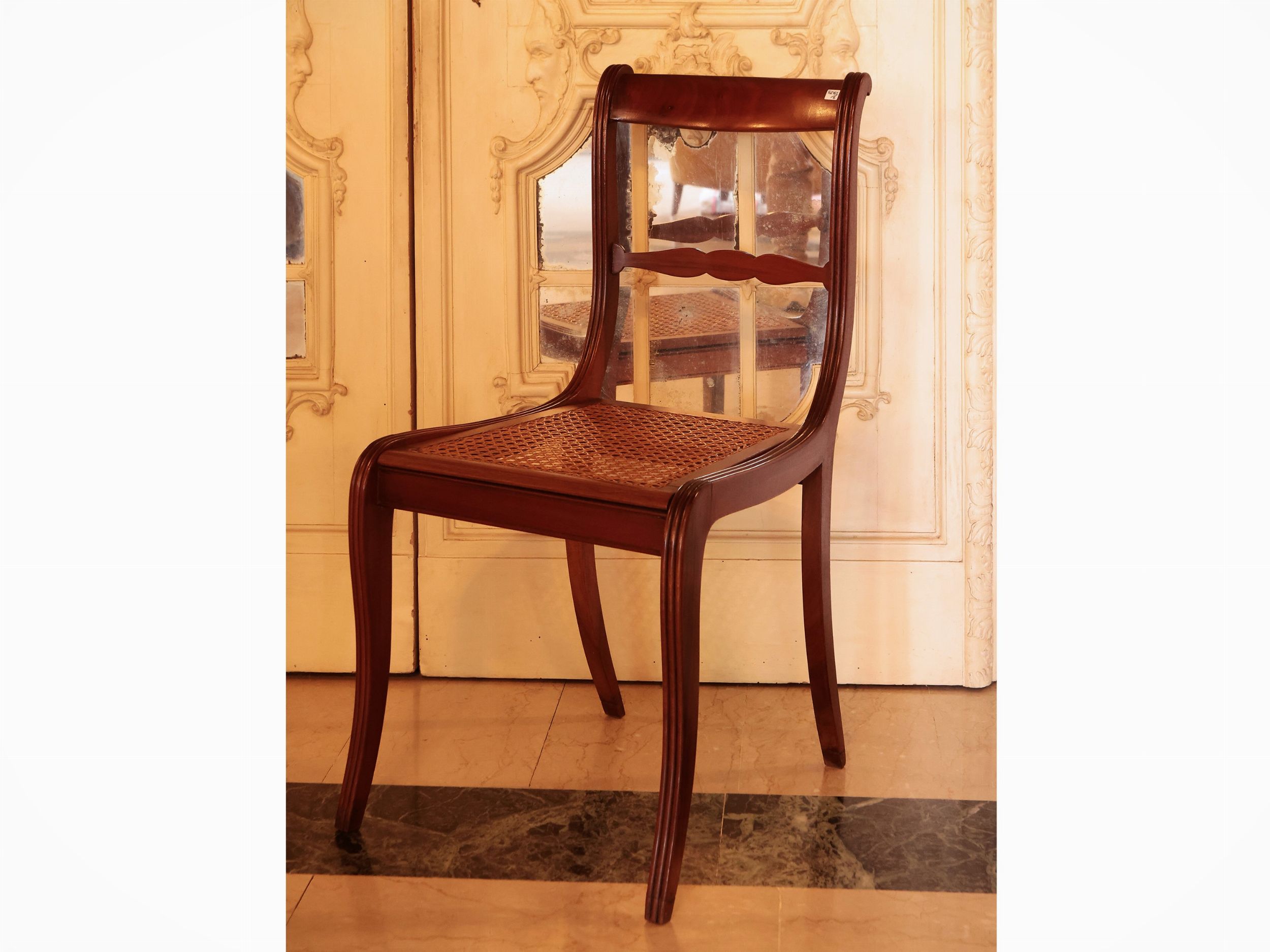 fine del XIX/inizio del XX secolo schienale con cartella traforata, sedili in paglia di Vienna, sostegni scanalati lievemente a sciabola