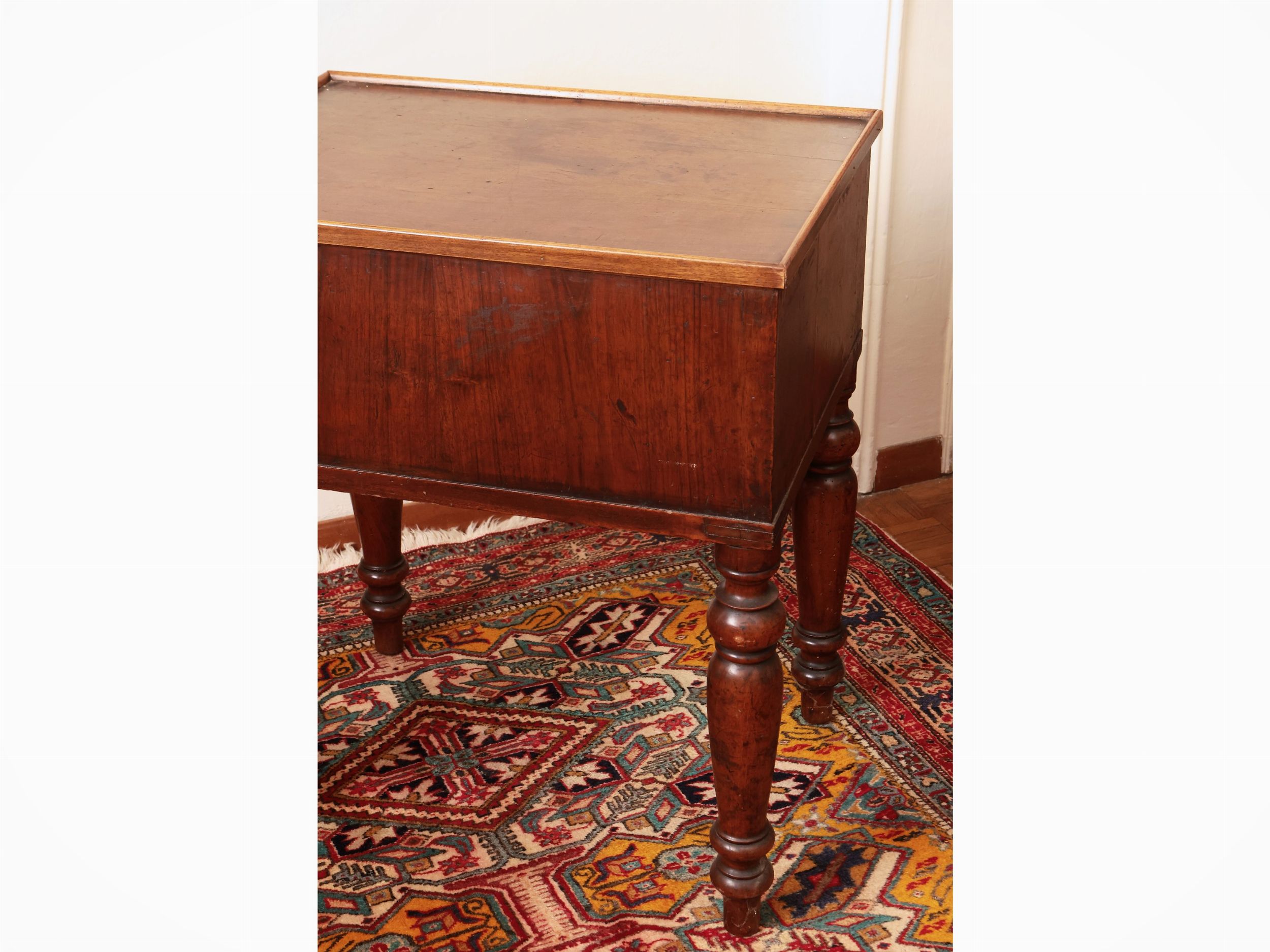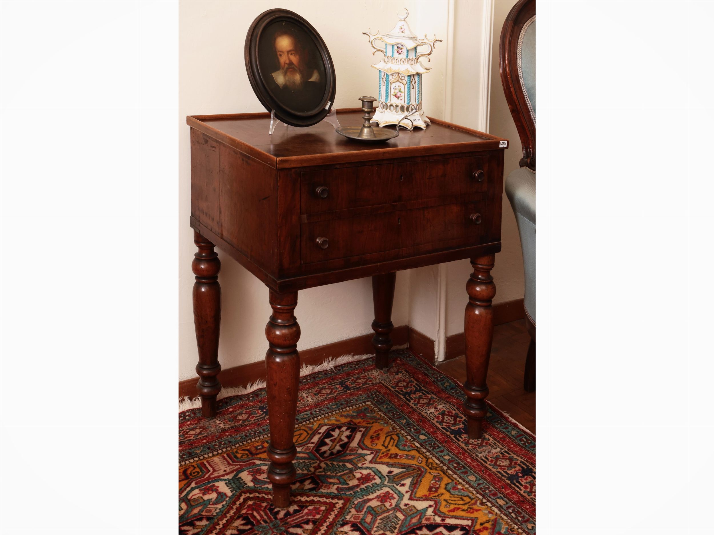 XIX/XX secolo due cassetti sul fronte divisi in piccoli vani, gambe tornite, alcuni difetti