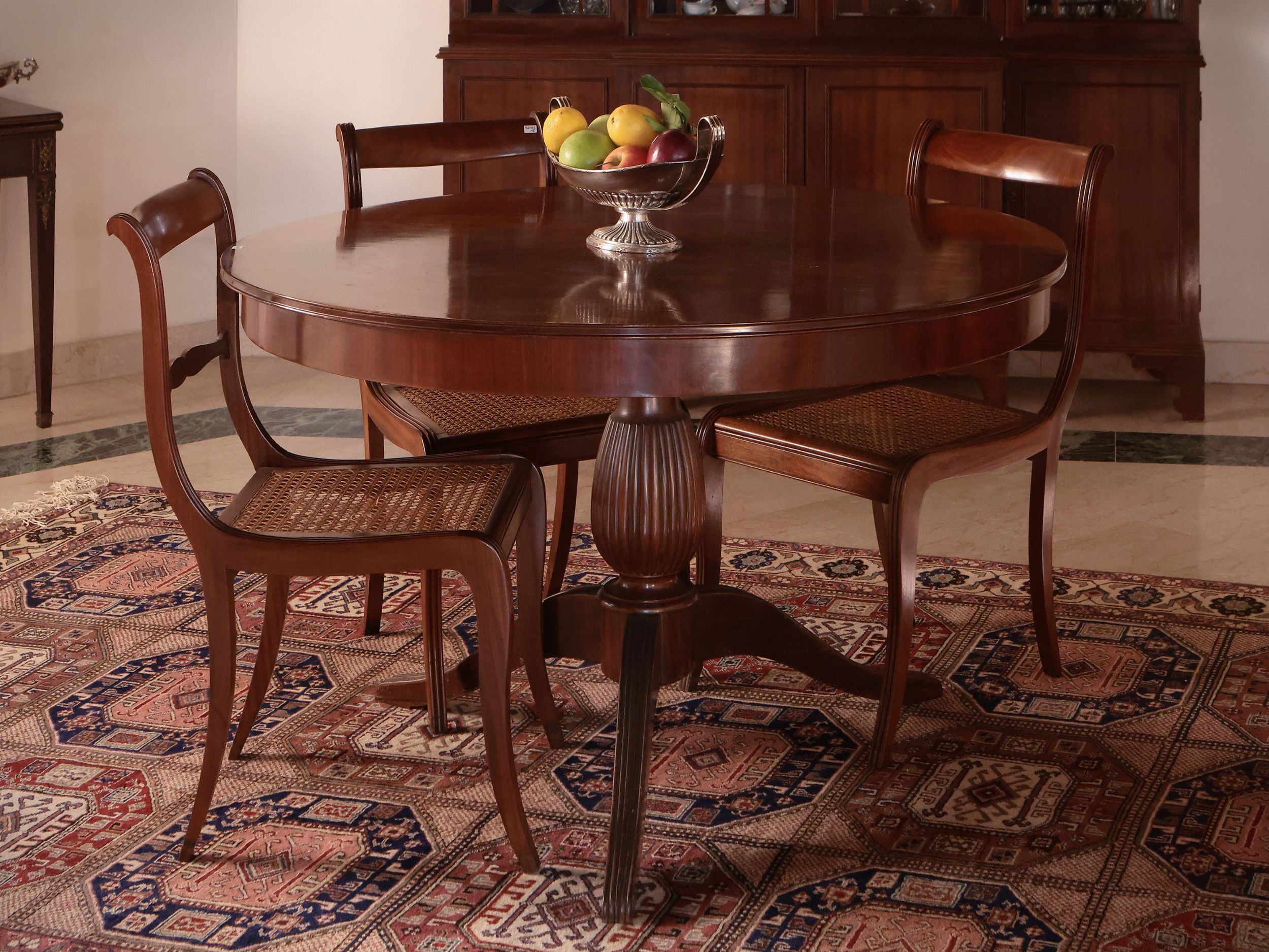 fine del XIX/inizio del XX secolo piano circolare, sostegno centrale a vaso scanalato su tre piedi a doppia voluta