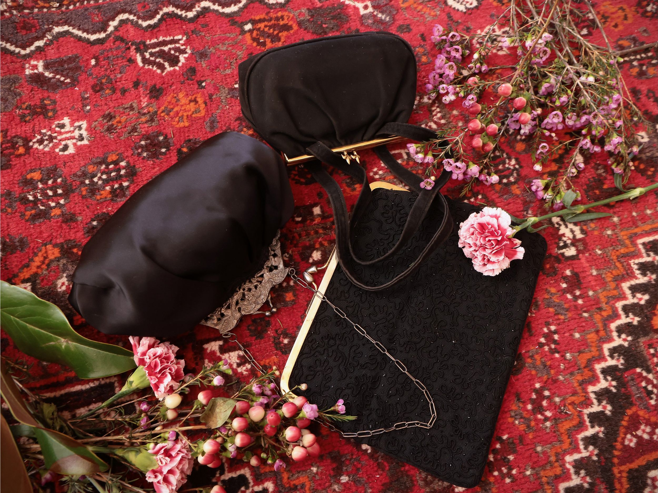 prima metà del XX secolo una in raso nero con fermezza in metallo istoriato, una in gros nero ed una scamosciata, alcuni difetti