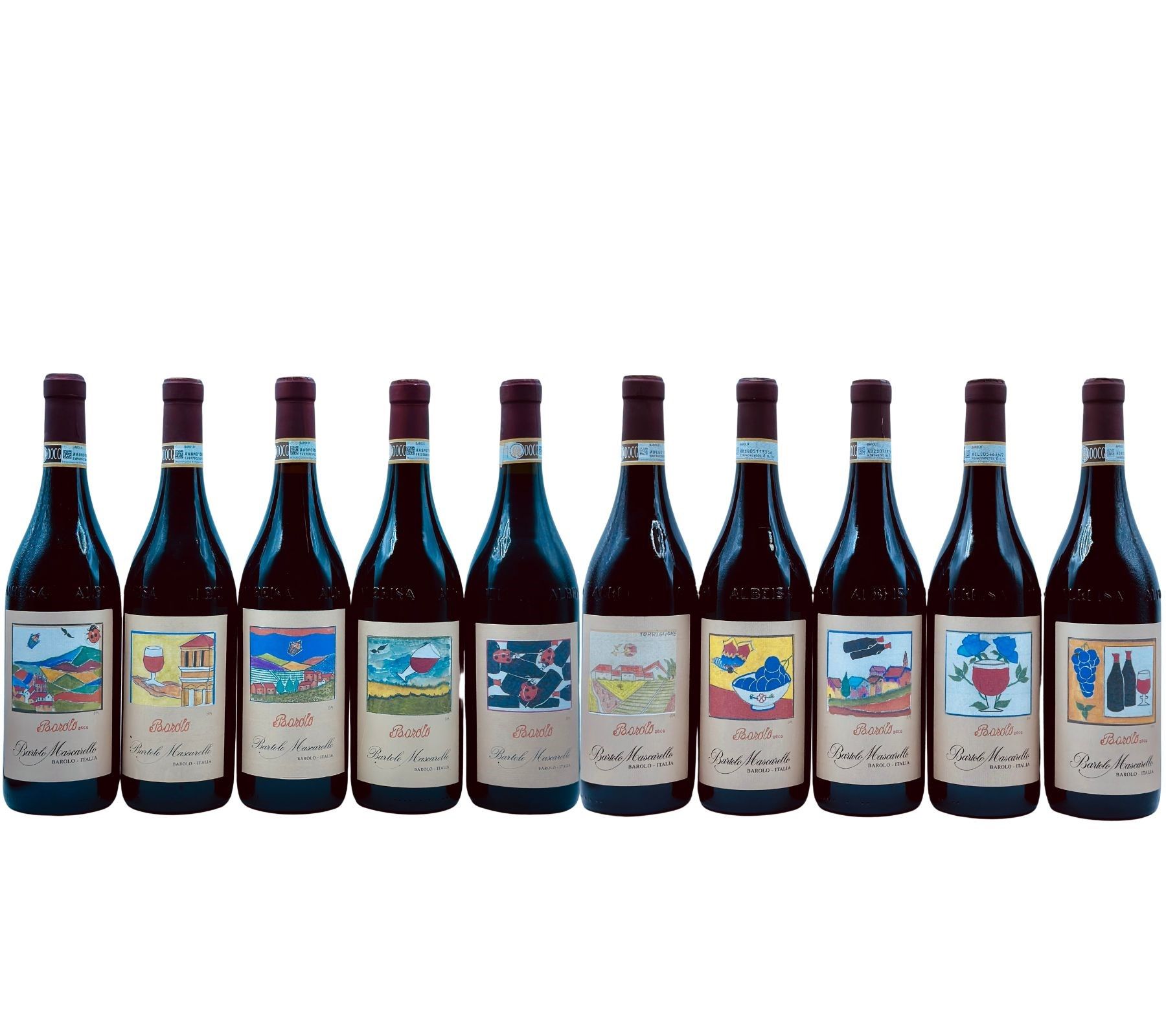 2010…2019 Piemonte, Barolo DOC - 10 bottiglia (bt), annata verticale dal 2010 al 2019. Livello: entro il collo (WN). Condition report: etichetta e capsula in perfette condizioni. Note: Alcune etichette sono state prodotte in serie limitate, rendendo queste bottiglie oggetti da collezione per appassionati e collezionisti. Oltre ai disegni di Bartolo Mascarello, la cantina ha collaborato con vari artisti per creare etichette uniche, mantenendo viva la tradizione artistica e introducendo nuove influenze stilistiche. Queste etichette non solo adornano le bottiglie di uno dei vini più rinomati d'Italia, ma raccontano anche storie, esprimono opinioni e celebrano l'arte in tutte le sue forme. Le bottiglie di Barolo Bartolo Mascarello con le loro etichette artistiche sono quindi molto più che semplici contenitori di vino, sono veri e propri oggetti d'arte.