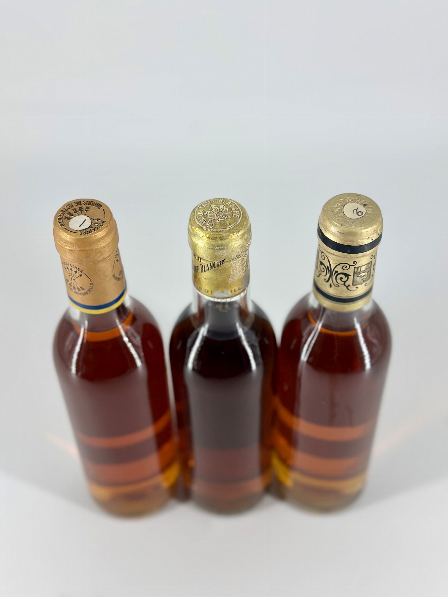 Francia, 0,375 Francia, Château Guiraud - 1 mezza bottiglia (hbt), annata 1986. Livello: sommità della spalla (TS). Condition report: etichetta in buone condizioni e capsula in ottime condizioni. Francia, Château La Tour Blanche - 1 mezza bottiglia (hbt), a
