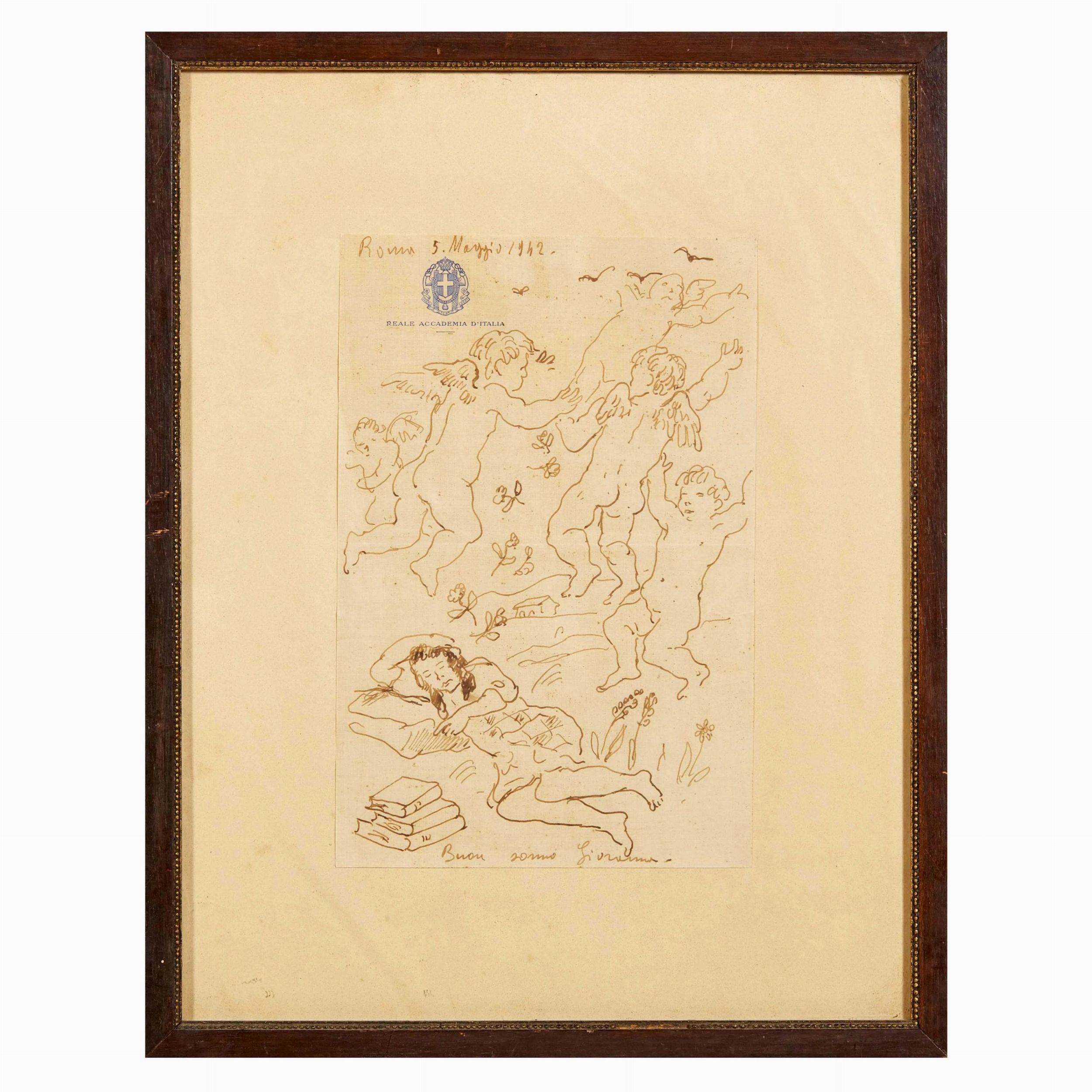 ARTISTA DEL XX SECOLO Buon sonno Giovanna 1942 china su carta intestata della Reale Accademia d’Italia cm 20,5x13,5 in alto a sinistra iscritto “Roma 5 Maggio 1942” in basso al centro iscritto “Buon sonno Giovanna”