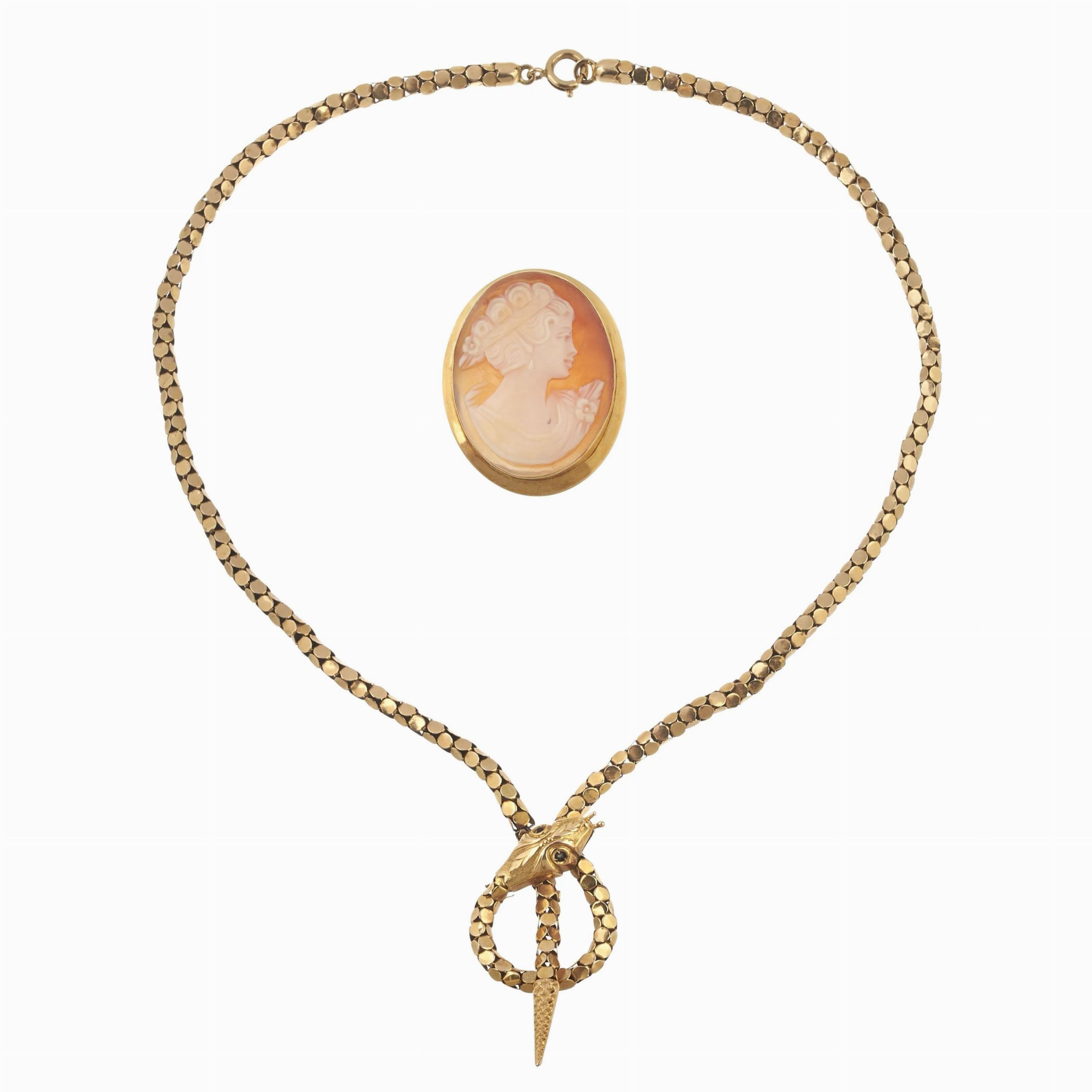 COLLANA A FORMA DI SERPENTE E SPILLA CON CAMMEO