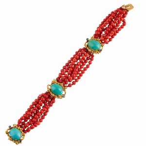 BRACCIALE A FASCIA MULTIFILO CON CORALLI E TURCHESI