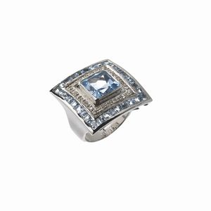 ANELLO GEOMETRICO CON ACQUAMARINE E DIAMANTI