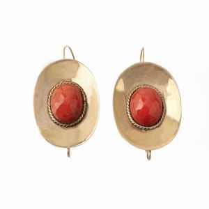 PAIO DI ORECCHINI PENDENTI CON CORALLO