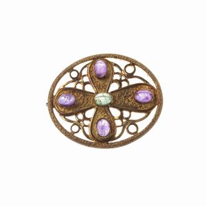 SPILLA FLOREALE CON PIETRE DI COLORE