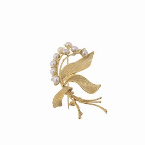 SPILLA A FORMA DI TRALCIO FIORITO CON PERLE