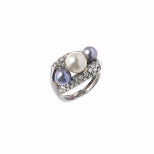 ANELLO A FASCIA CON PERLE E DIAMANTI