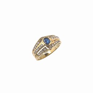 COLLANA CON ANELLO composta da catena in oro giallo 18kt e pendente in oro e argento, il ciondolo reca al centro [..]