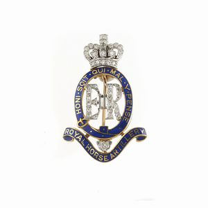 SPILLA REGIMENTAL ORDINE DELLA GIARRETTIERA in oro a basso titolo, decorata in smalto, raffigurante una croce [..]