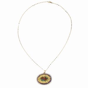 LOTTO COMPOSITO composto da una collana in oro giallo 18kt, lungh. cm 52,5, gr. 6; accompagnata da un pendente [..]