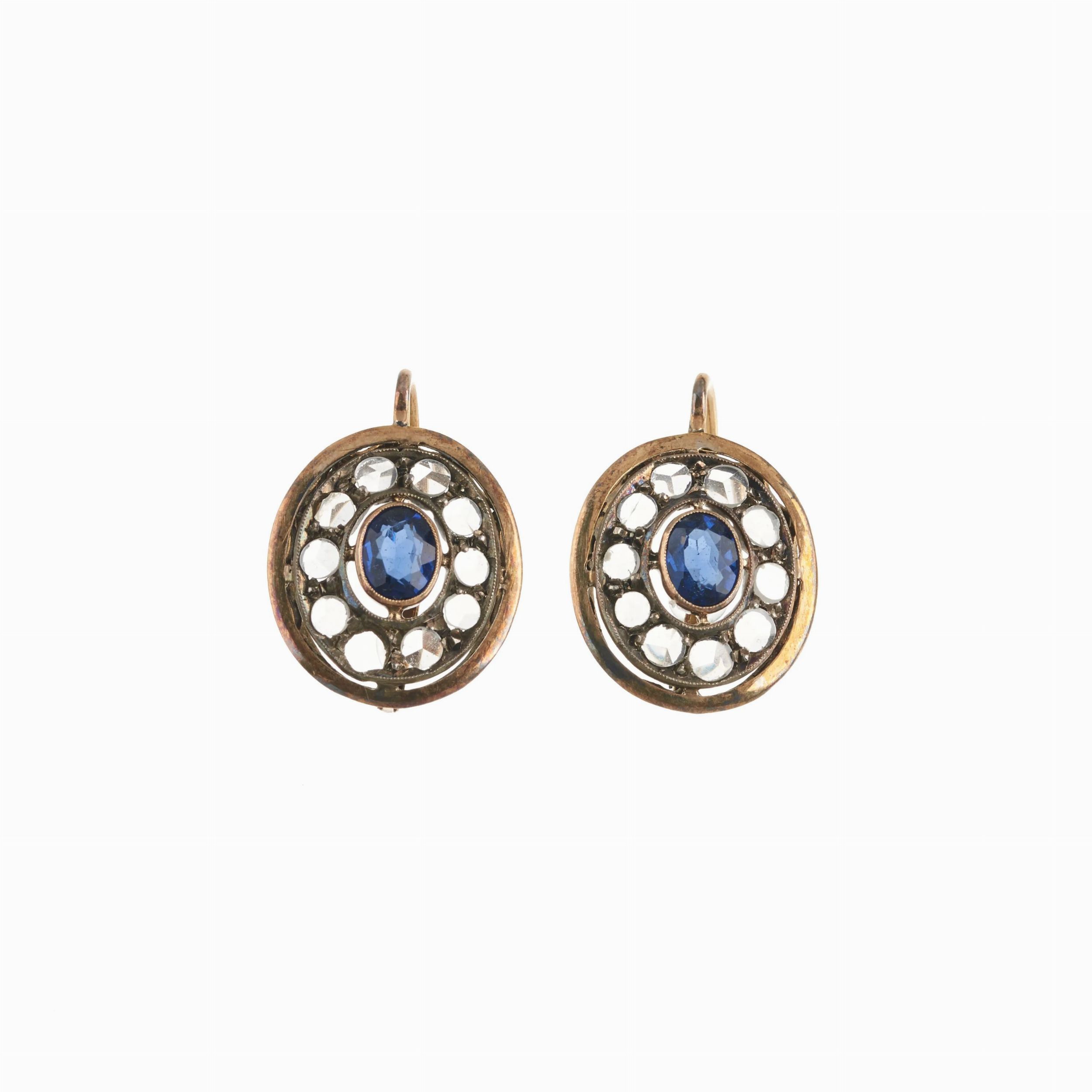 PAIO DI ORECCHINI FLOREALI CON ZAFFIRI E DIAMANTI