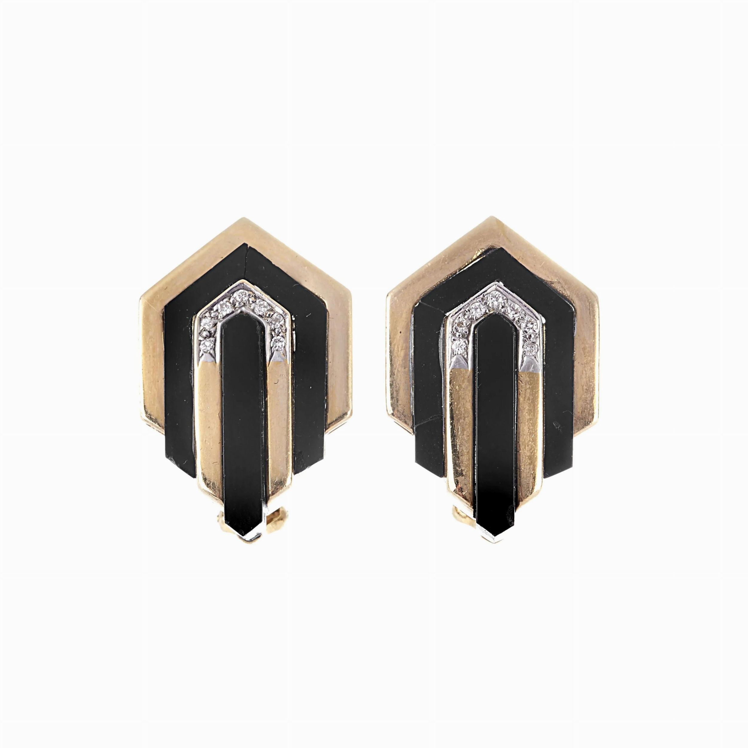 PAIO DI ORECCHINI GEOMETRICI CON ONICE E DIAMANTI