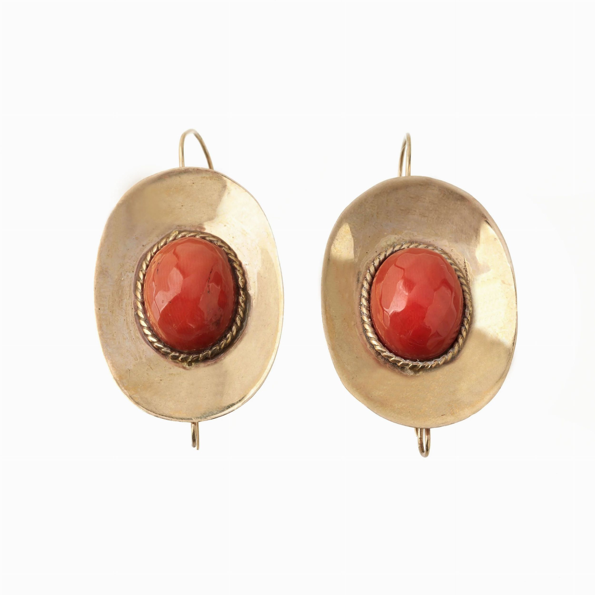 PAIO DI ORECCHINI PENDENTI CON CORALLO