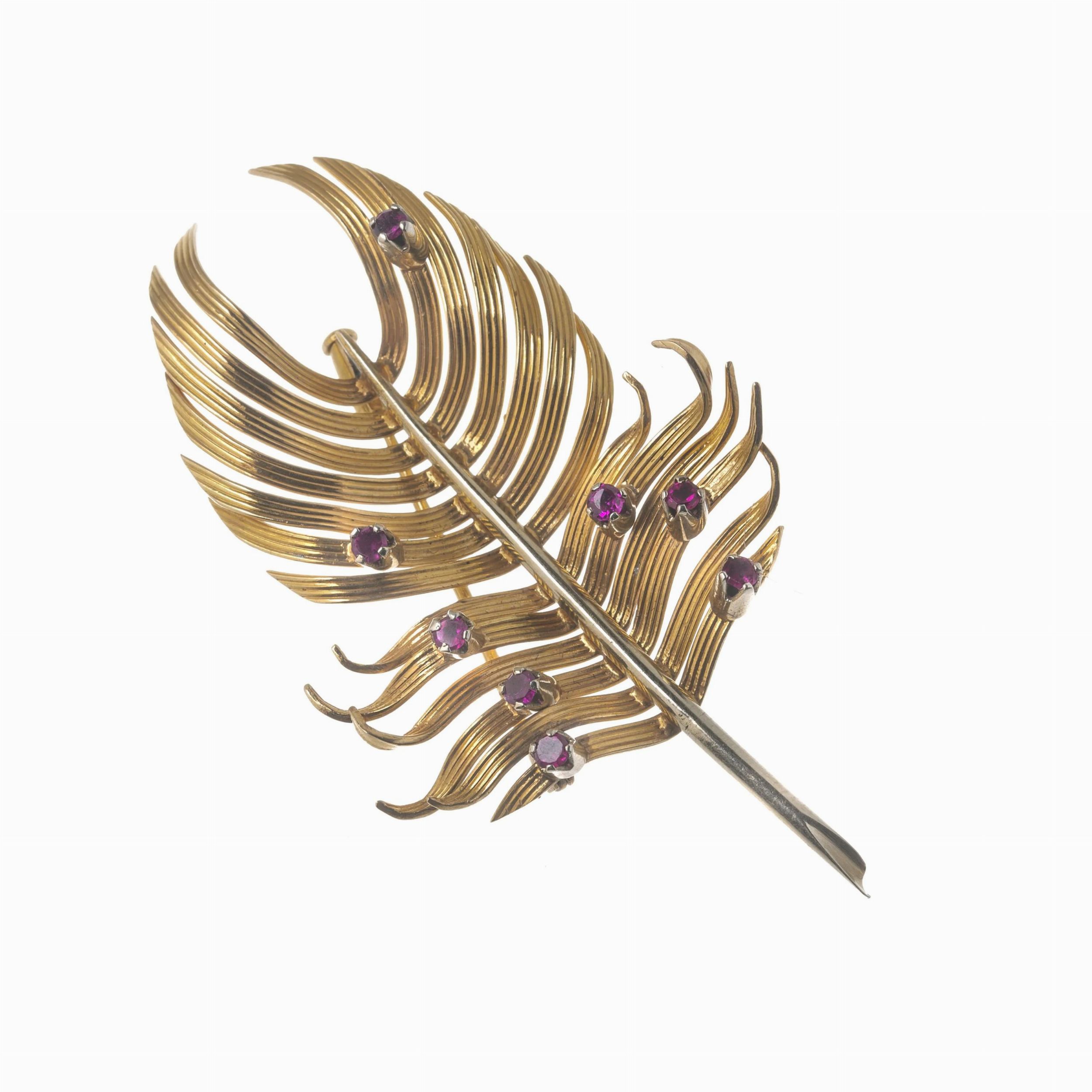 SPILLA A FORMA DI FOGLIA CON RUBINI