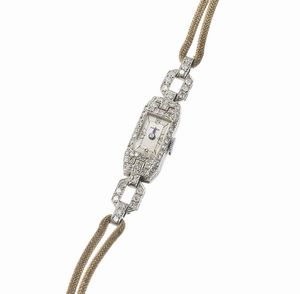 ROLEX OROLOGIO DA DONNA CON DIAMANTI cassa in oro bianco 18kt, quadrante argenté firmato 'Rolex Precision' [..]