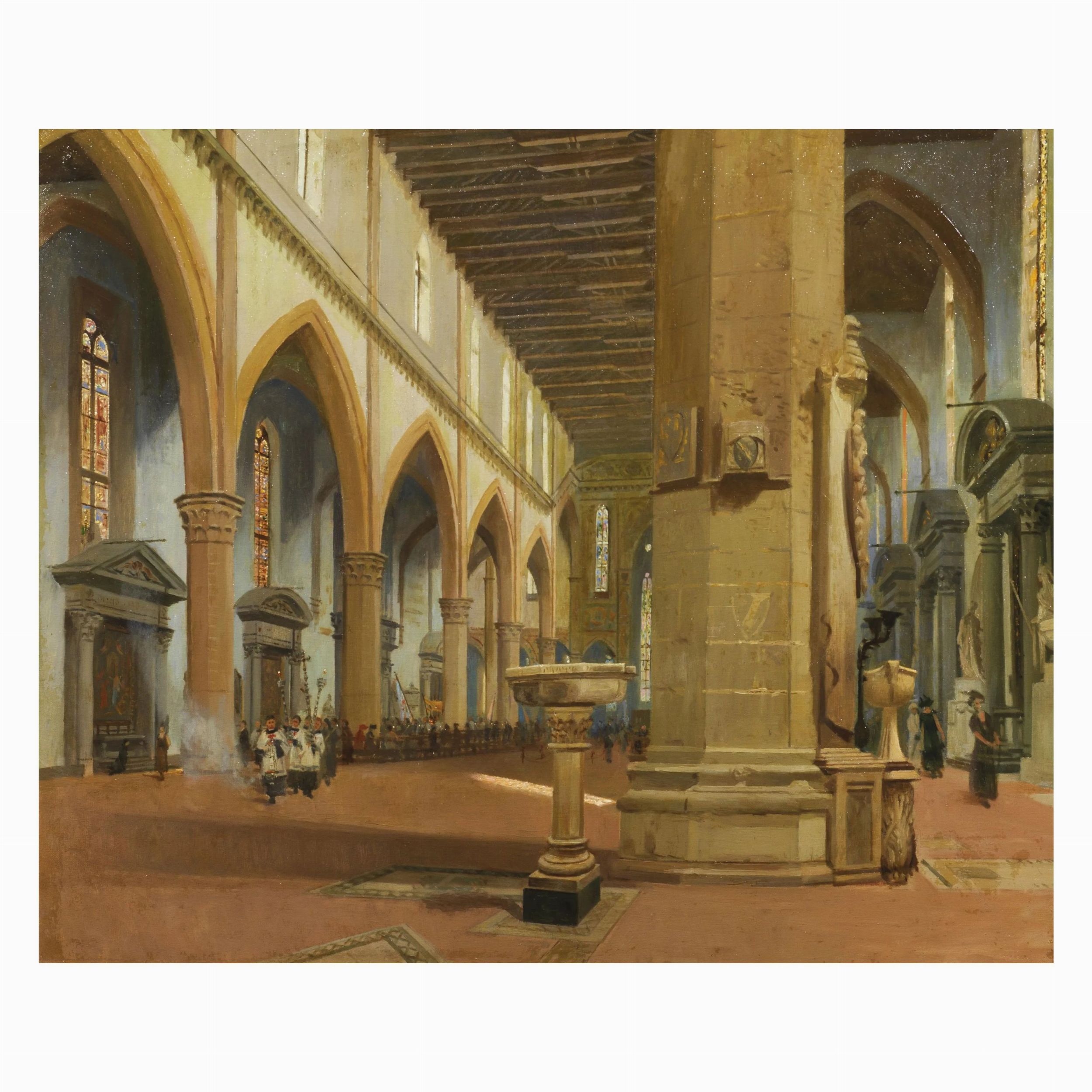 INTERIOR OF SANTA CROCE, FLORENCE oil on canvas, 77x94 cm on the reverse: label of collection Mario Galli '234'