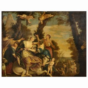 Gabriele Caliari (1568-1631) IL RATTO DI EUROPA olio su tela, cm 136x151,5 firmato e datato '1617' in basso a [..]