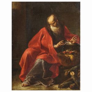 Pittore caravaggesco, sec. XVII SAN GEROLAMO olio su tela, cm 113x94,5   Caravagist painter, 17th [..]