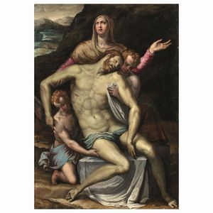 Attribuito a Marco Pino (Siena, 1521 - Napoli, 1583) DEPOSIZIONE DI CRISTO olio su tavola, cm 96x66,5 [..]