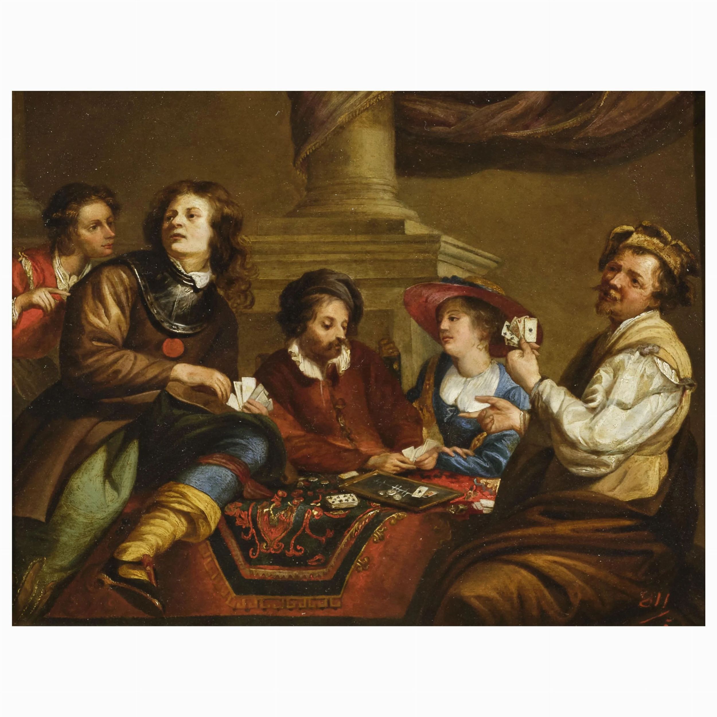 L'olio su rame è una versione ridotta del dipinto Giocatori di carte di Theodoor Rombout (1597-1637).