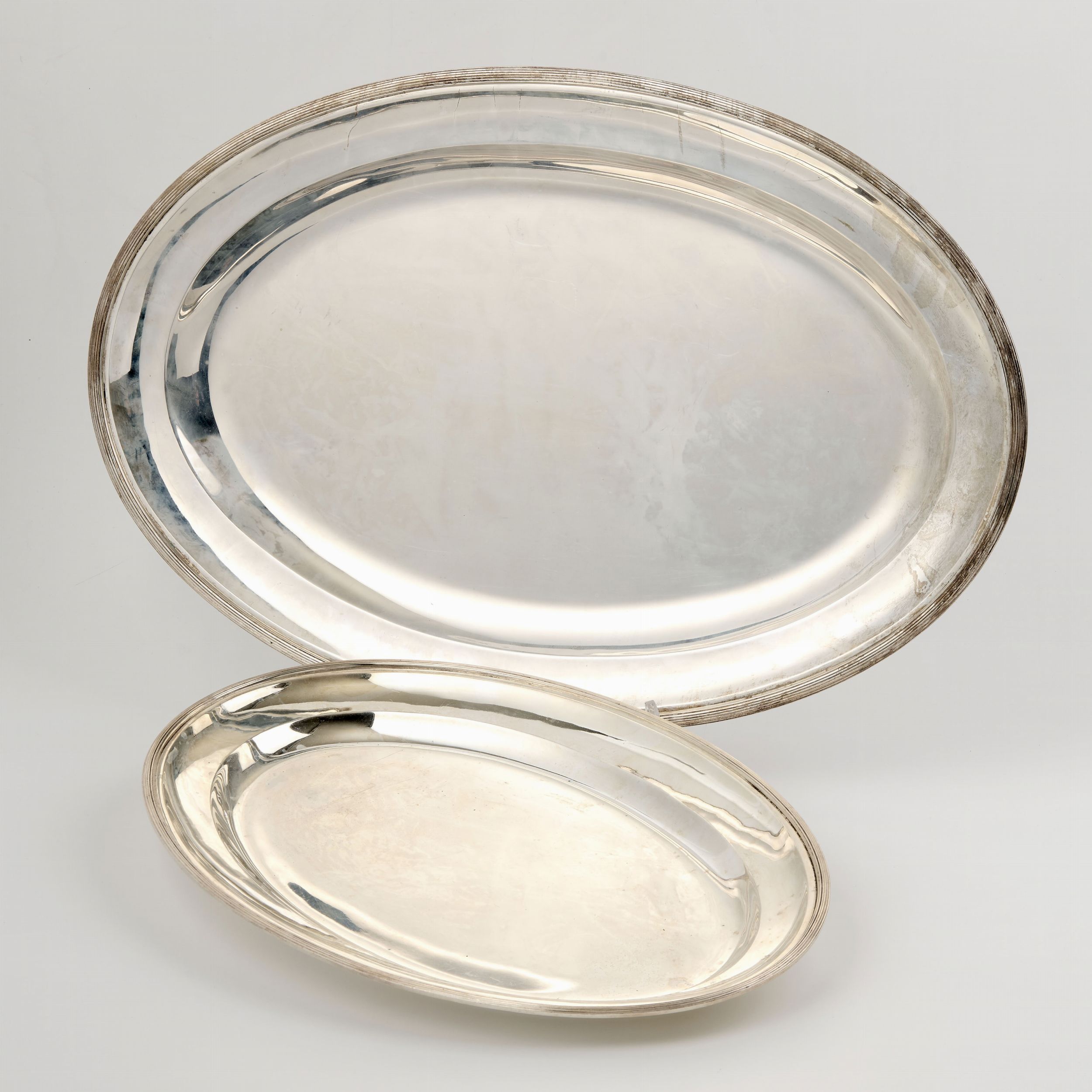 Due vassoi ovali in argento con bordo rialzato