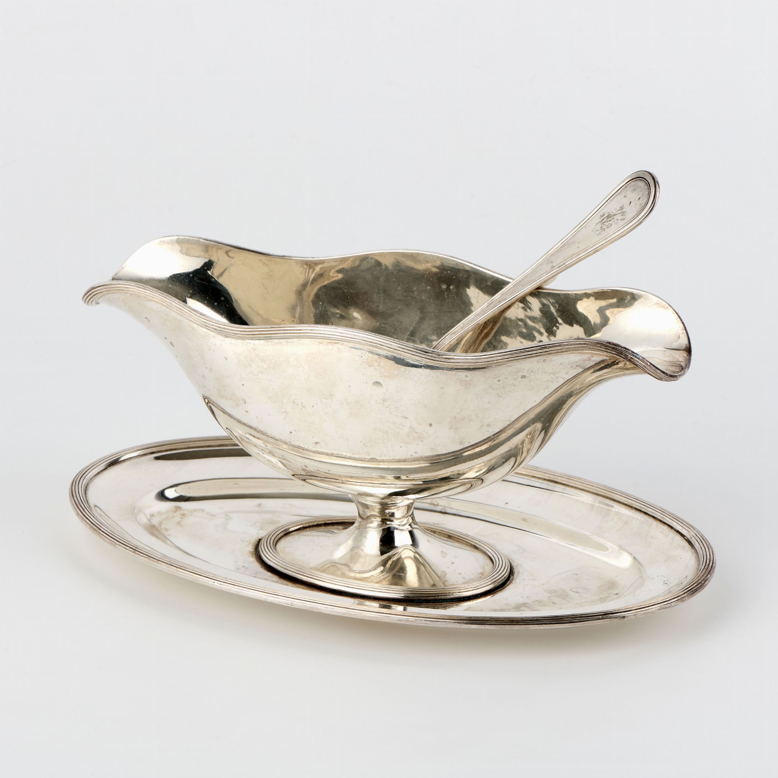 Salsiera in argento con vassoio ovale