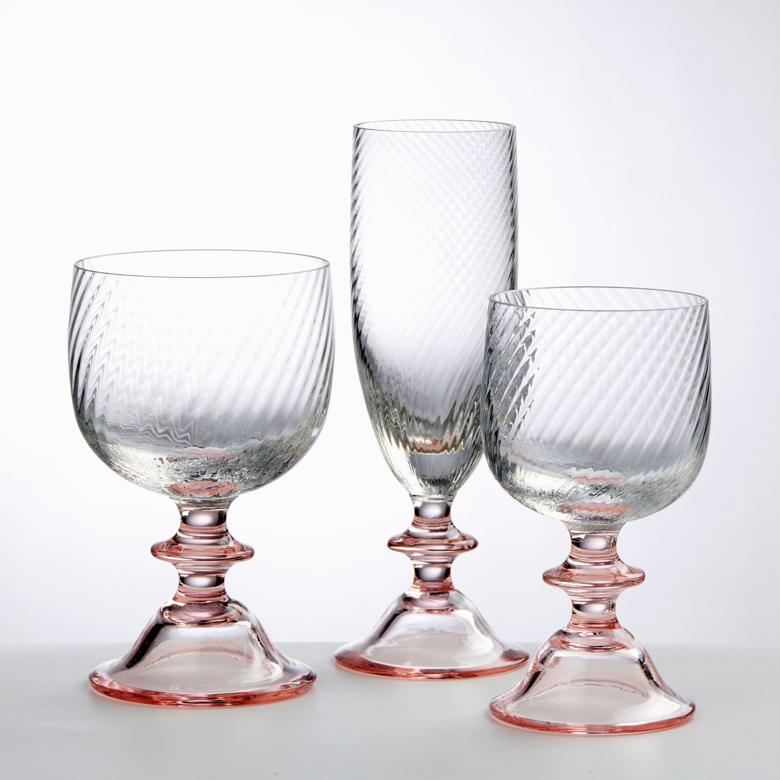 Servizio di bicchieri in vetro soffiato trasparente e rosa chiaro