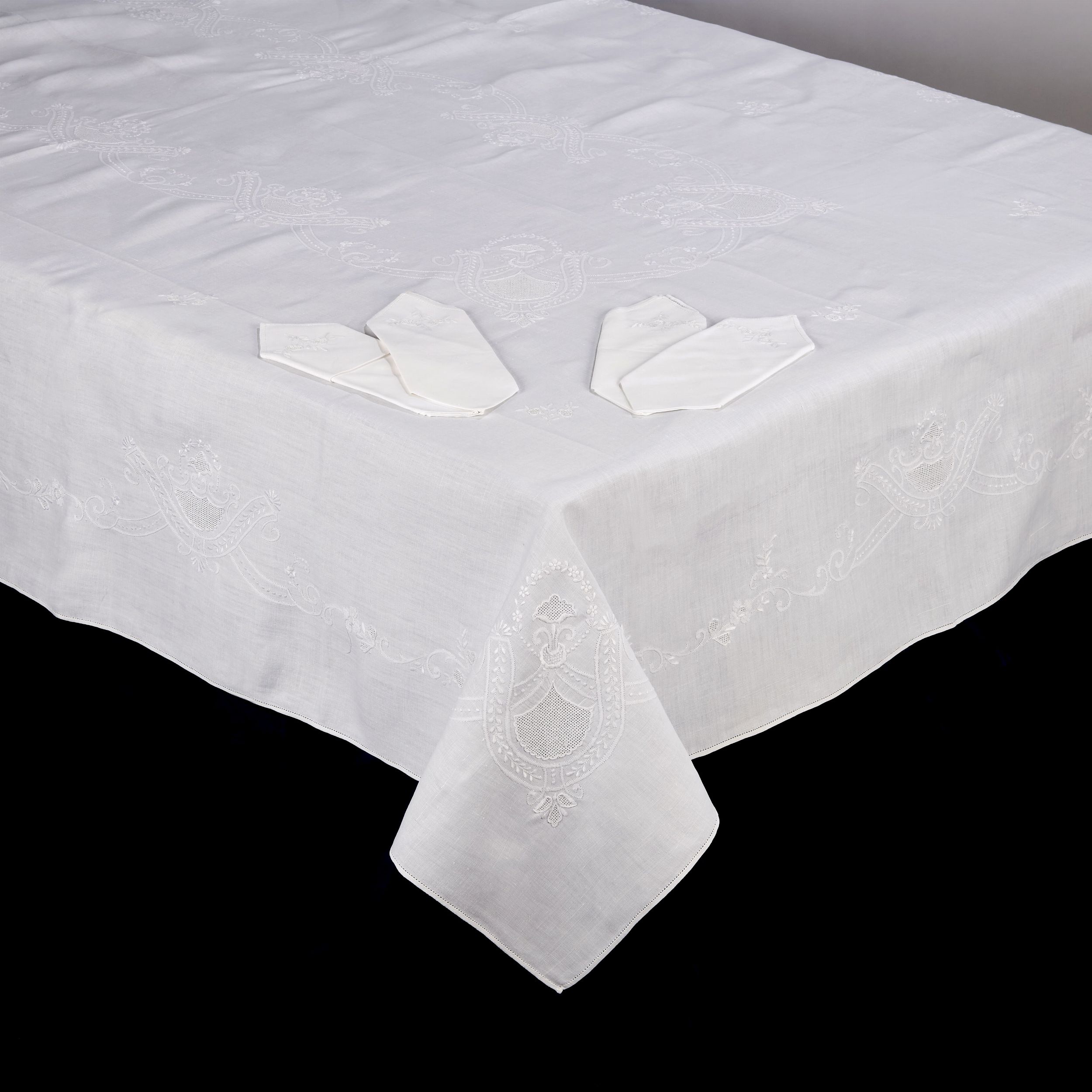 Tovaglia e ventiquattro tovaglioli in lino bianco