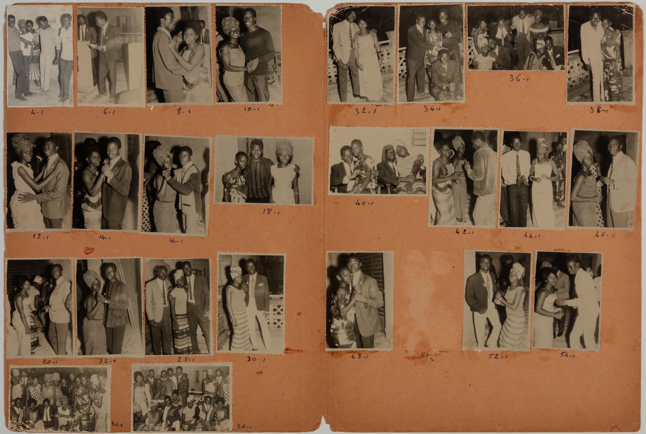 25 stampe vintage alla gelatina ai sali d'argento applicate su cartelletta originale, cm 8 x 5,4 ciascuna foto; cm 34,8 x 25,7 cartelletta chiusa (cm 34,8 x 51,6 cartelletta aperta) 1966 Titolata e datata a penna blu al recto della cartelletta e timbro STUDIO - MALICK - RUE 30 X 19 Bagadadji - BAMAKO al verso della cartelletta
