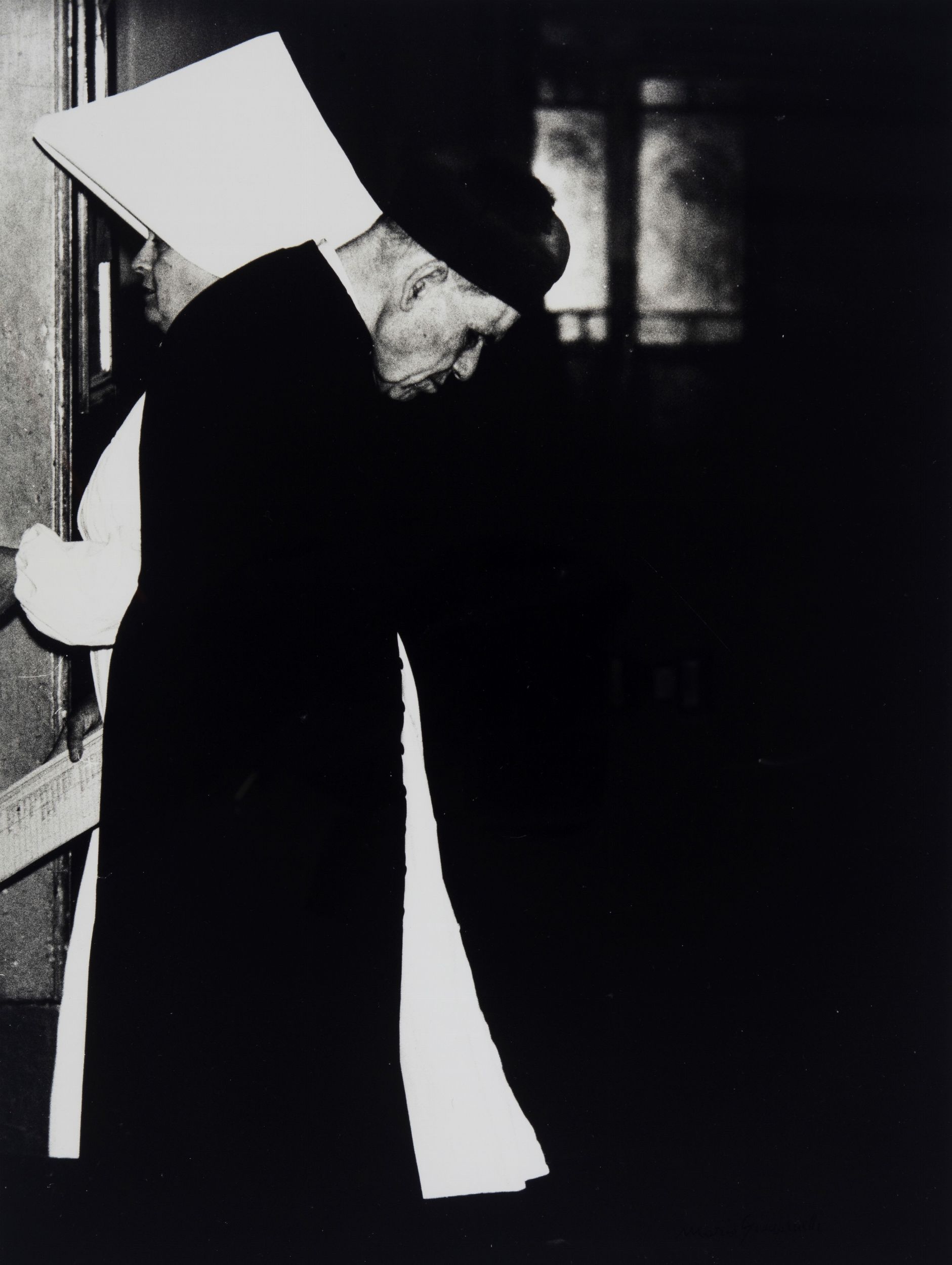 Stampa alla gelatina ai sali d'argento, stampata anni 1960/1970, cm 39,6 x 29,5 1966/1968 Firmata a penna nera sull'immagine e titolata, firmata e dedicata a matita con timbro del fotografo al verso