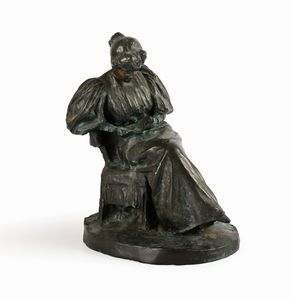 bronzo, altezza cm 16 - con la base cm 26x10,5x10,5 raffigurato a mezzo busto con la testa girata di tre quarti [..]