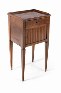 cm 83x45x37 con piano rifinito da profilo rialzato, un cassetto ed un'antina scorrevole, gambe rastremate. Dif [..]