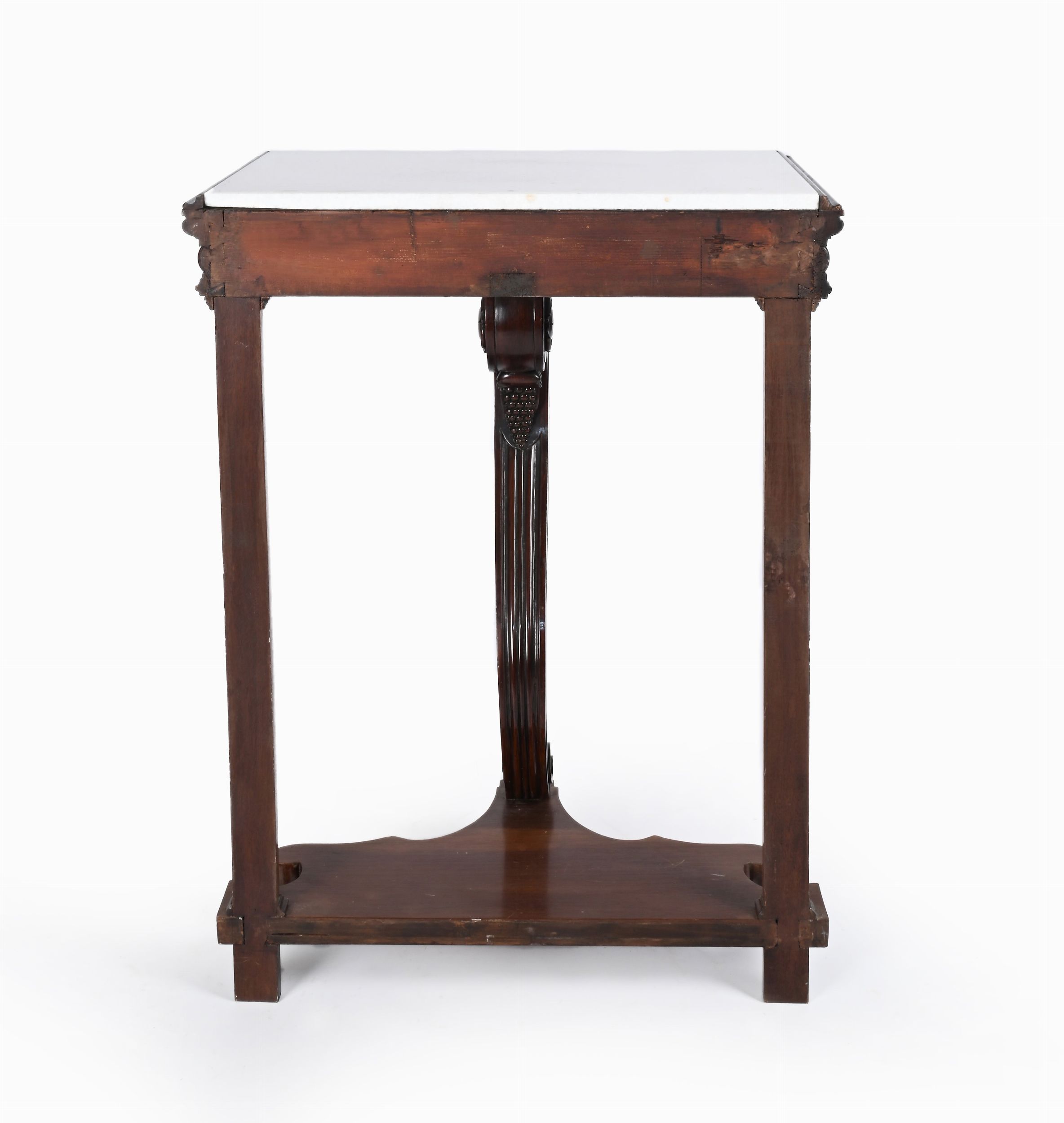 Console in legno con piano in marmo bianco, inizi del XX secolo