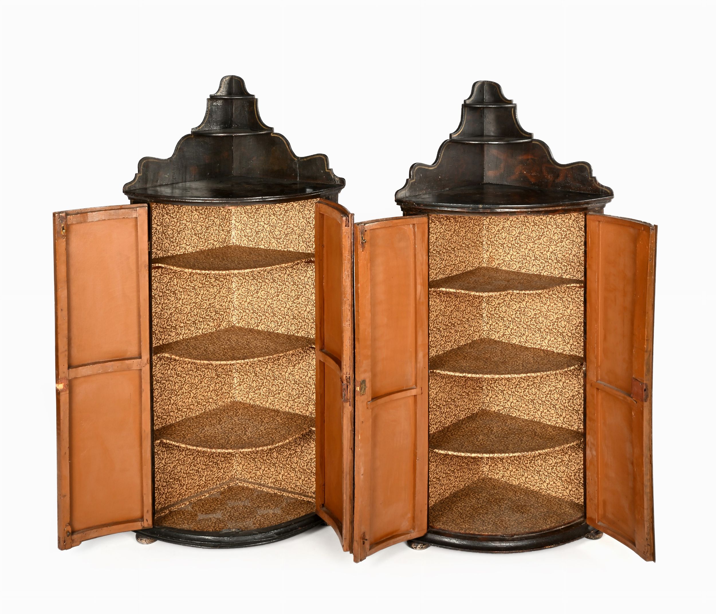 Coppia di angoliere in legno laccato a chinoiséries, Inghilterra, XVIII secolo