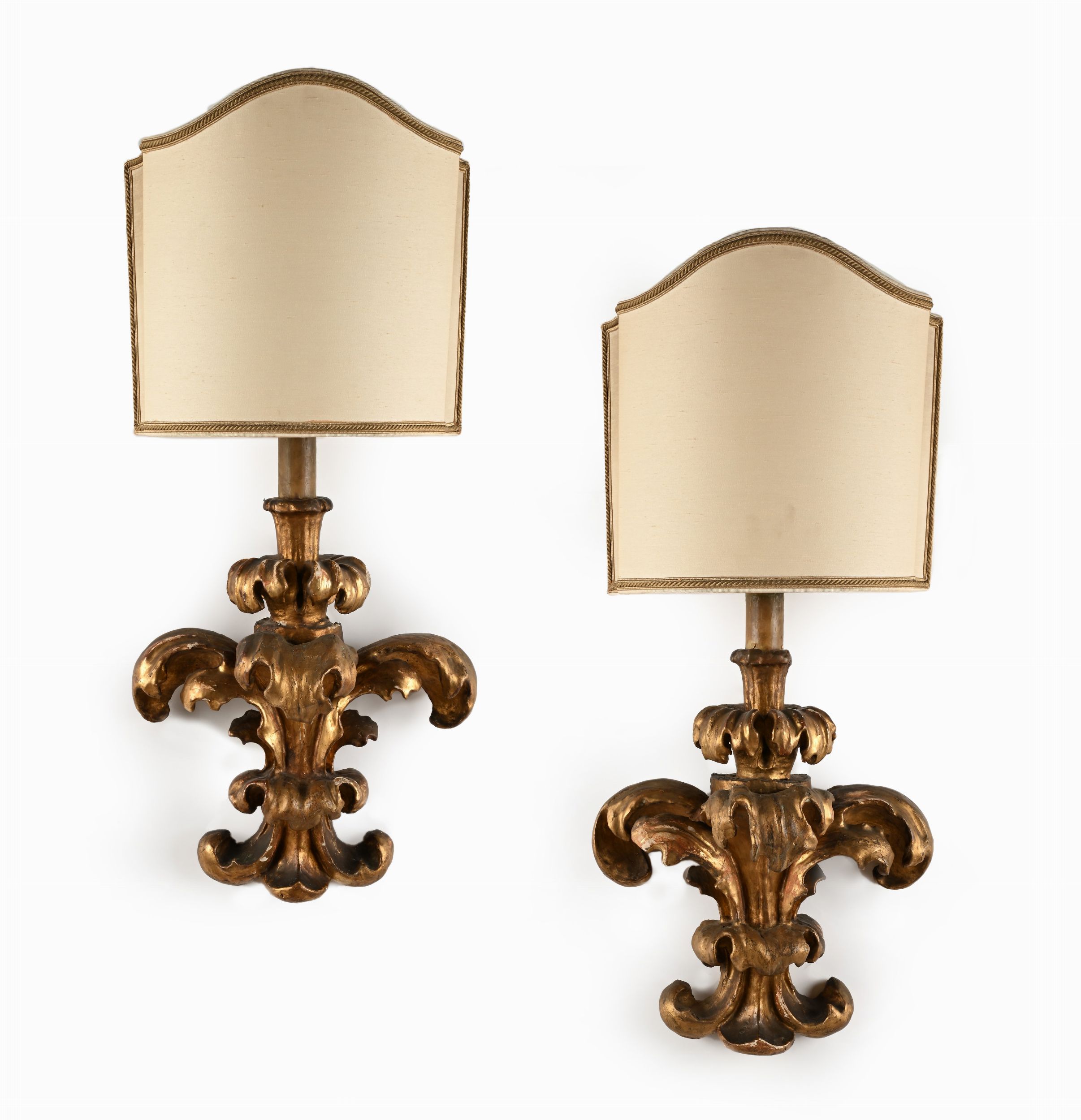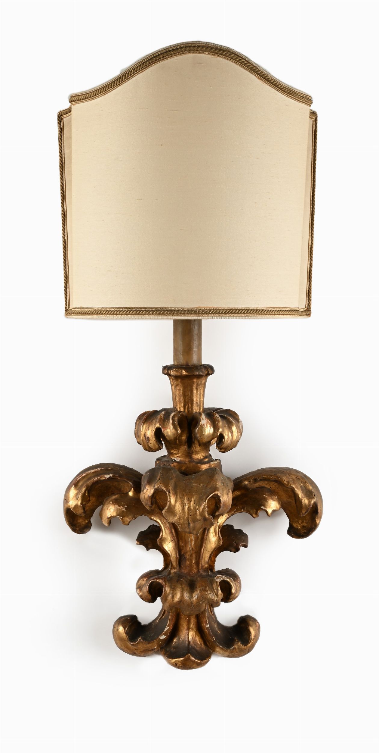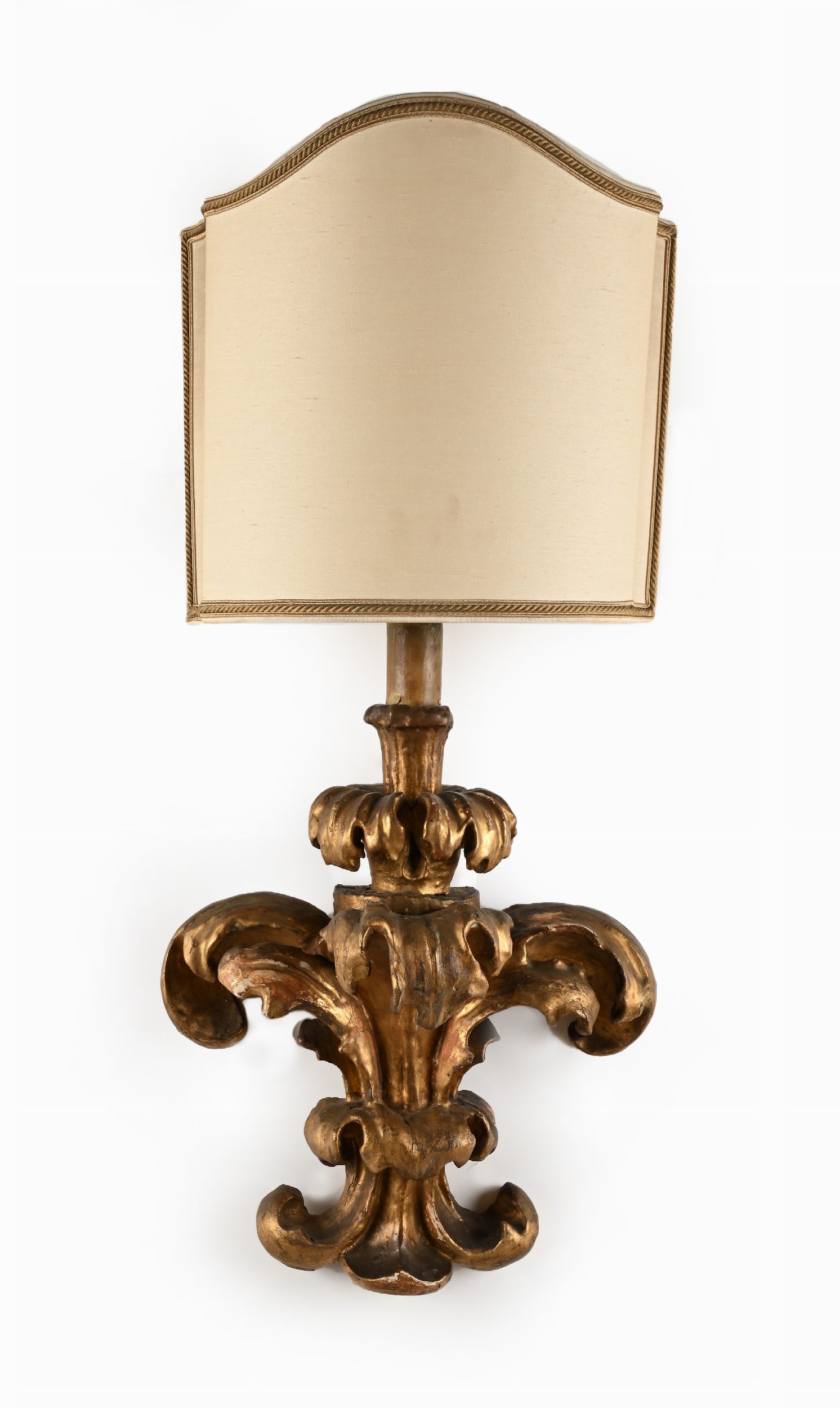 Coppia di appliques in legno scolpito, intagliato e dorato, XVIII secolo