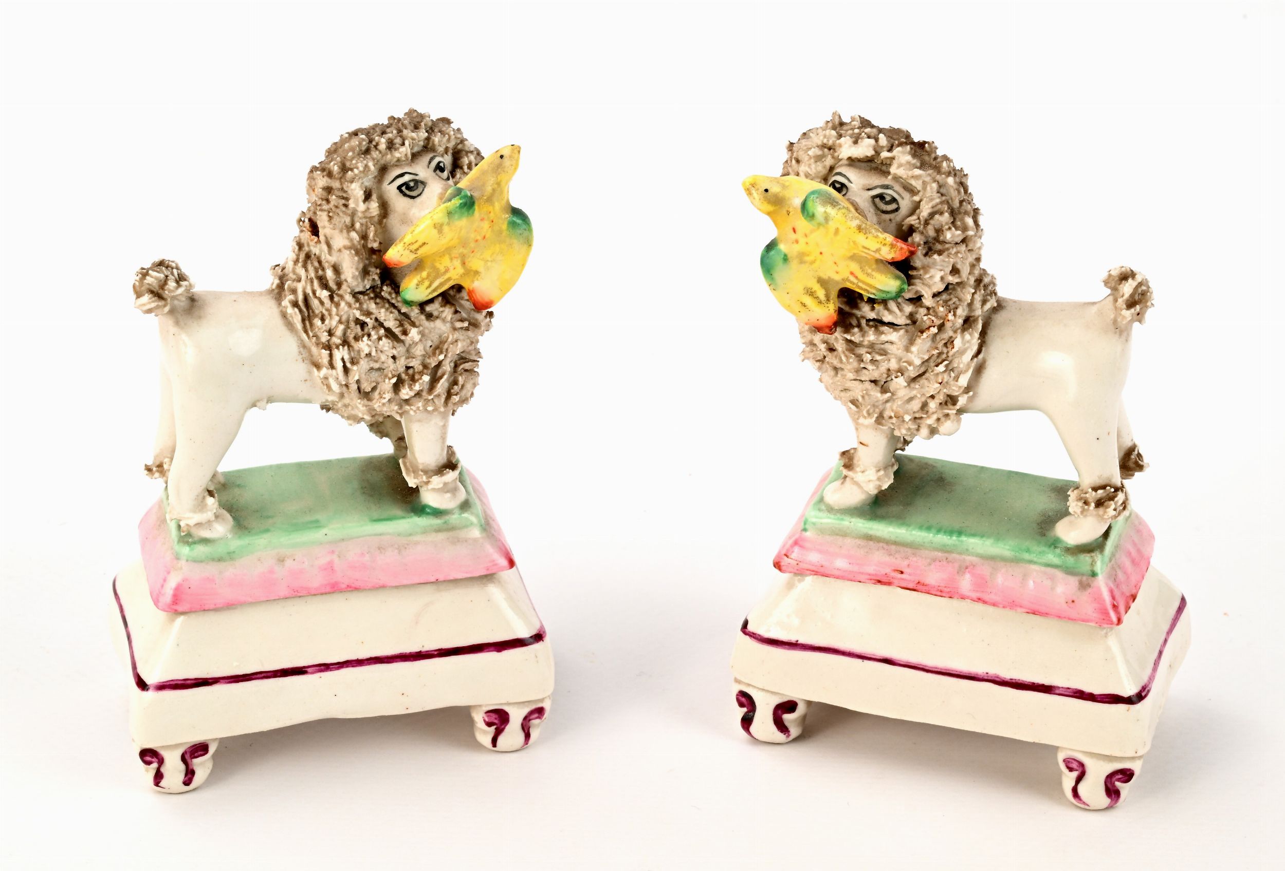Coppia di barboncini con volatili, Inghilterra, Staffordshire, metà del XIX seco [..]