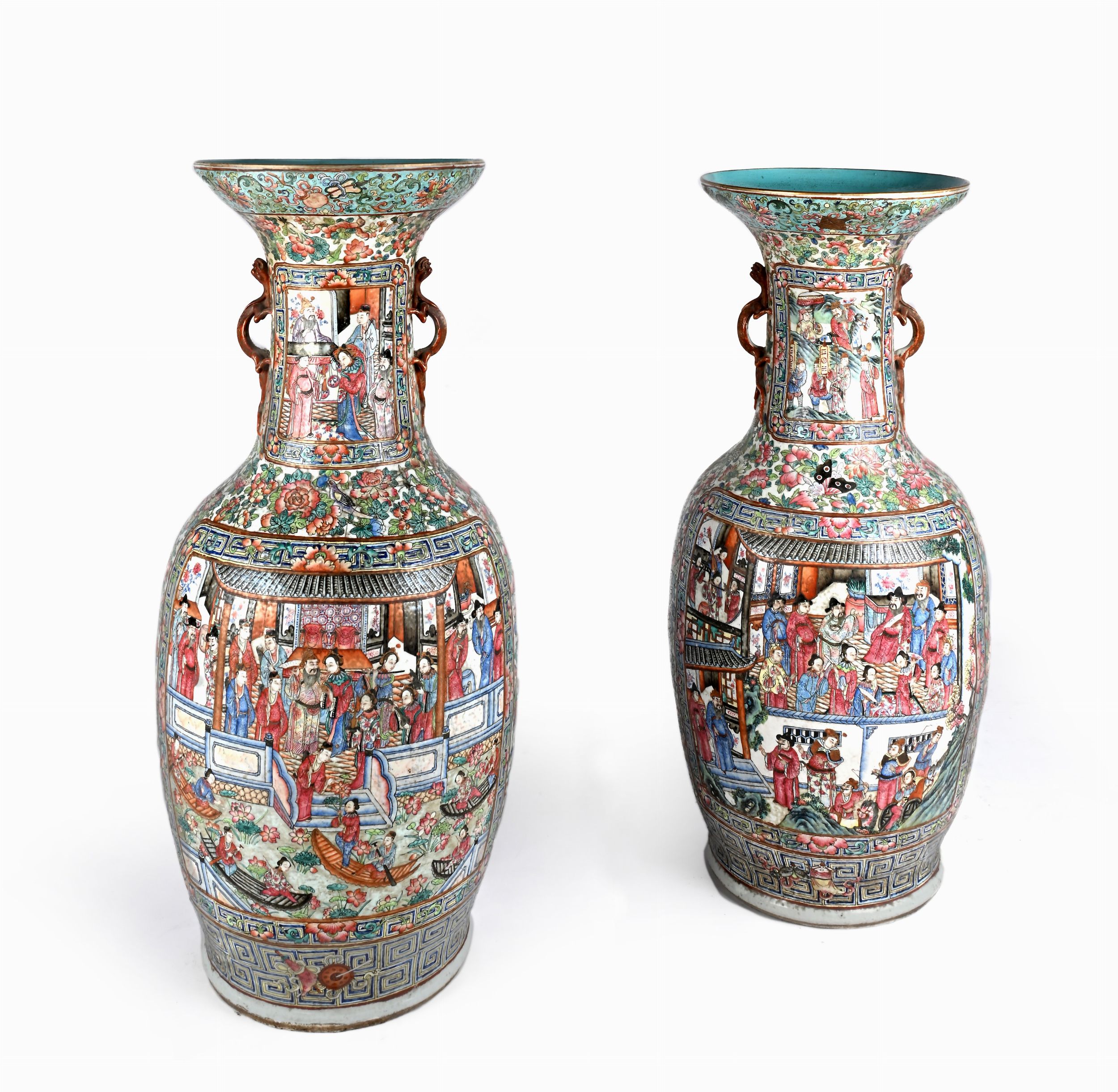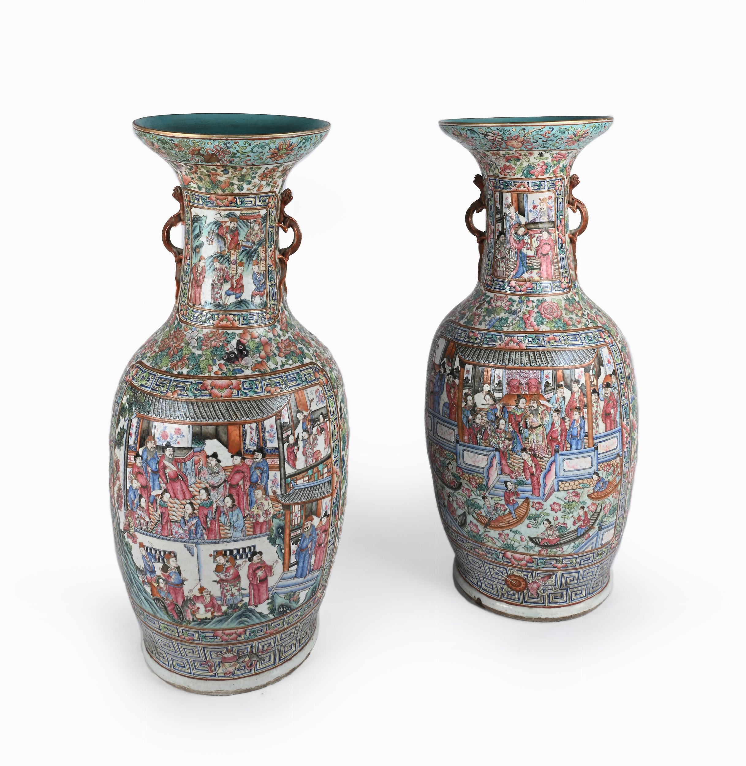 Coppia di grandi vasi in porcellana policroma, Cina, Dinastia Qing, XIX secolo