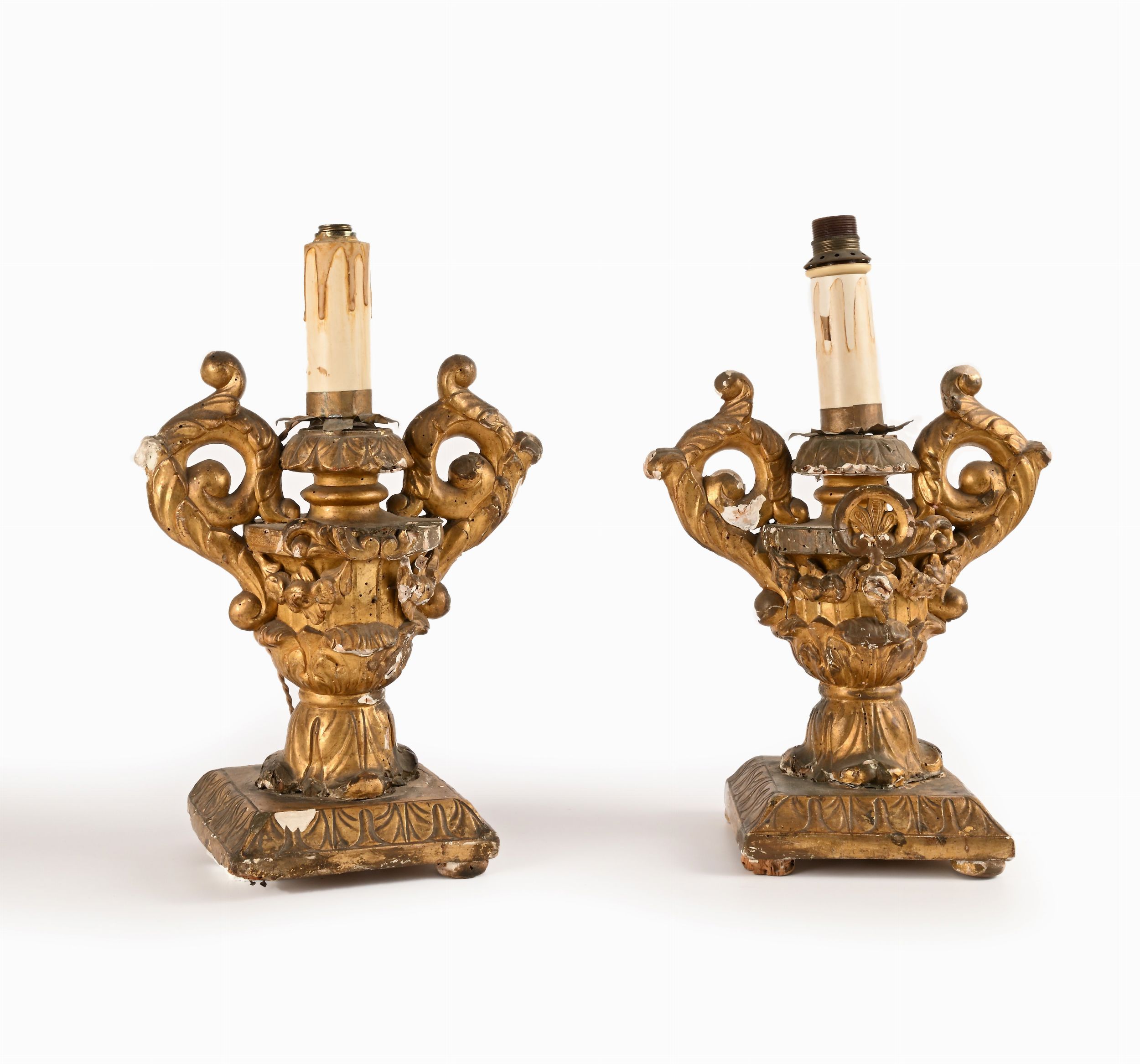 Coppia di portapalme in legno dorato, Italia settentrionale, XVIII secolo